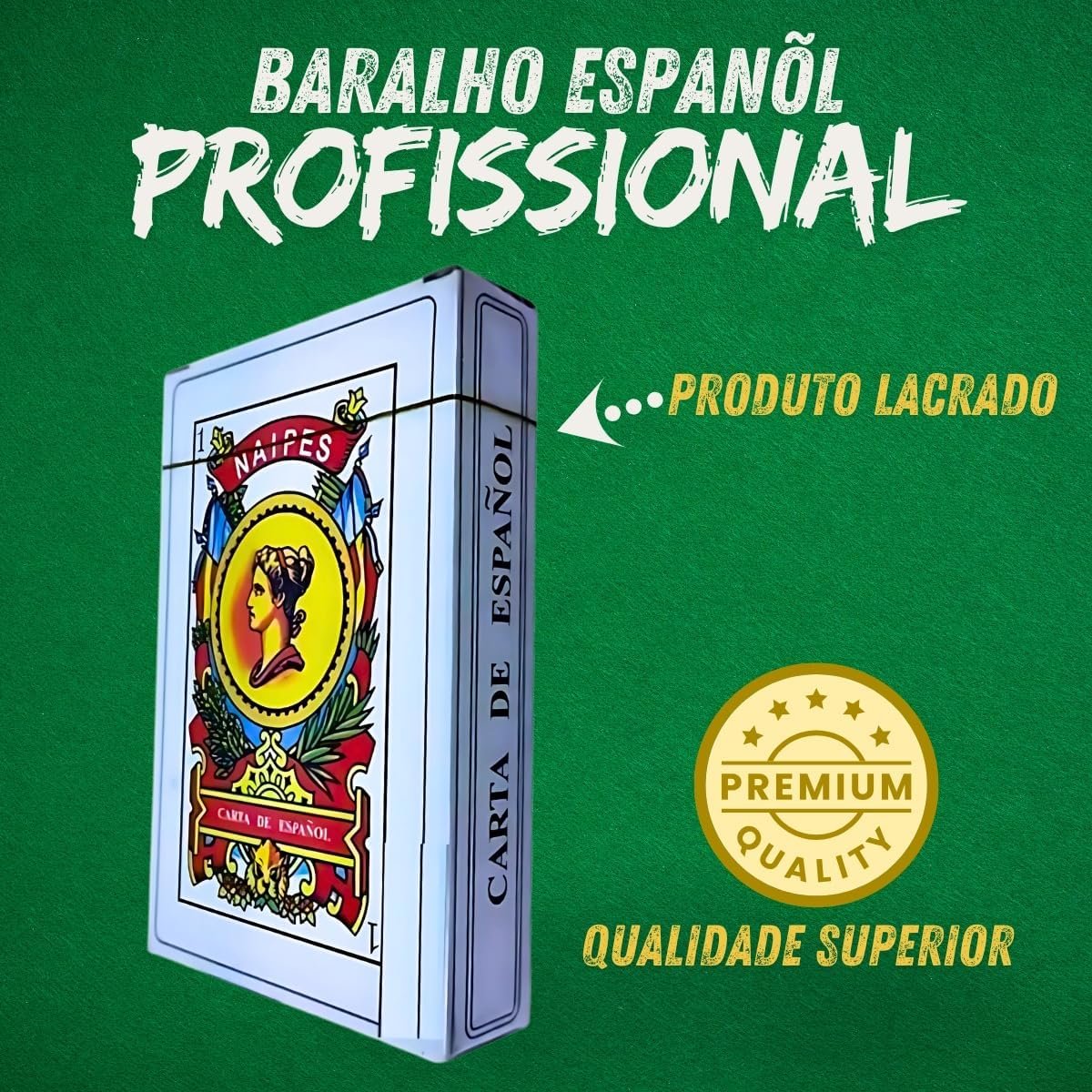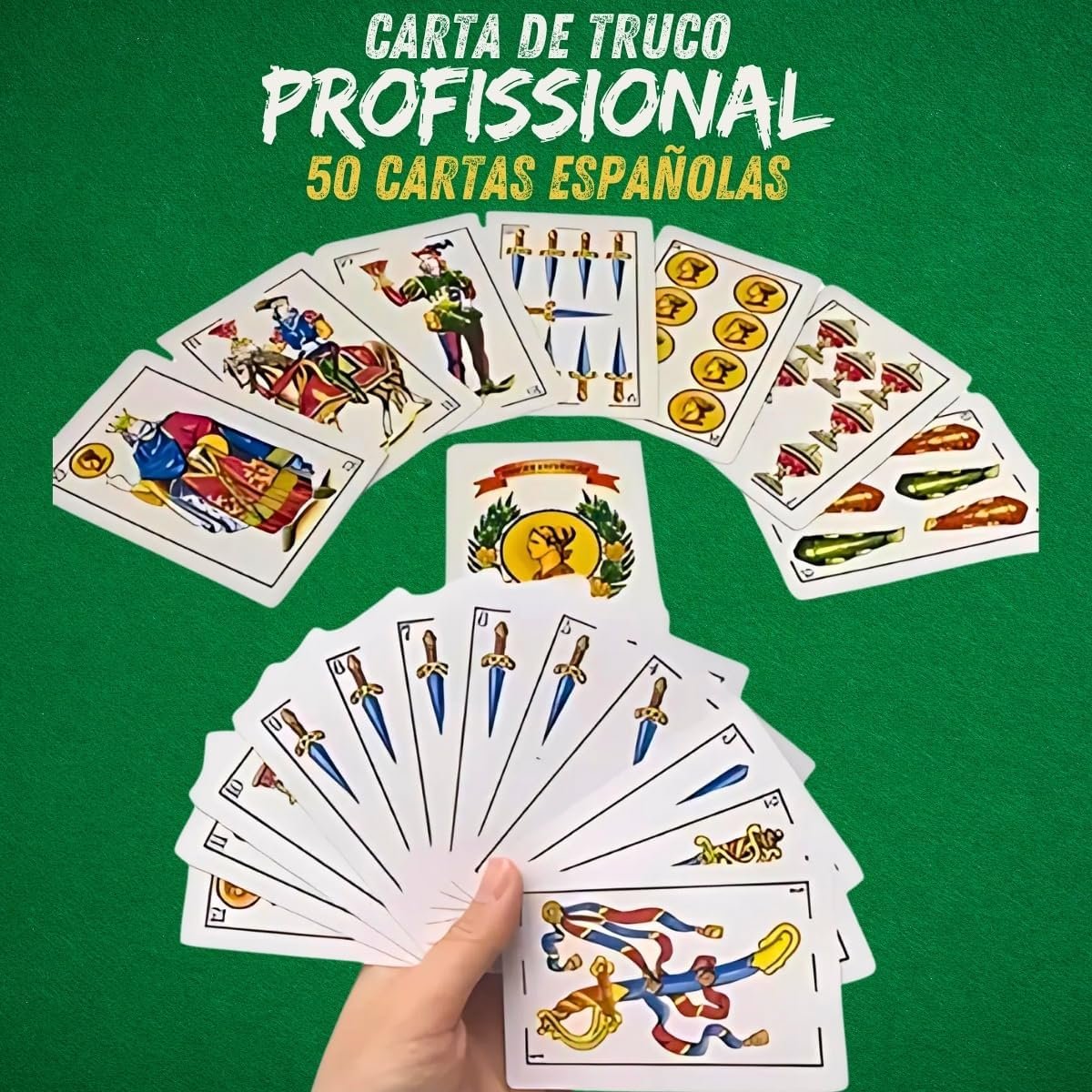 Baralho de Truco Clássico 50 Cartas Espanholas, Papelão Resistente e Durável Naipes Grandes e Cores Fortes