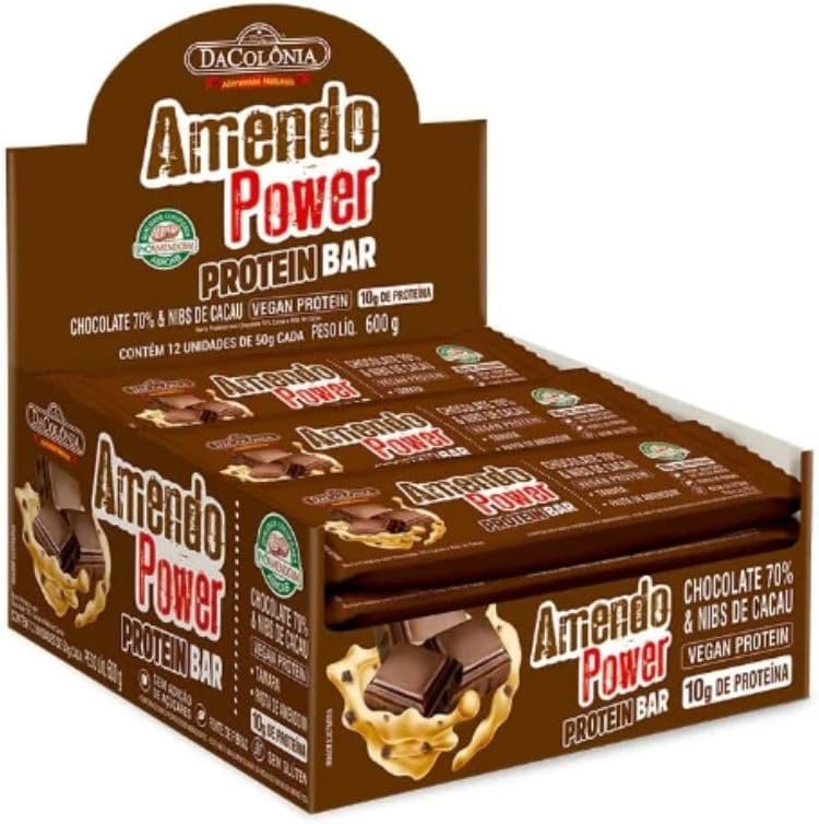 Barra de Proteína Amendo Power Chocolate 70% & Nibs Cacau Display 12 un