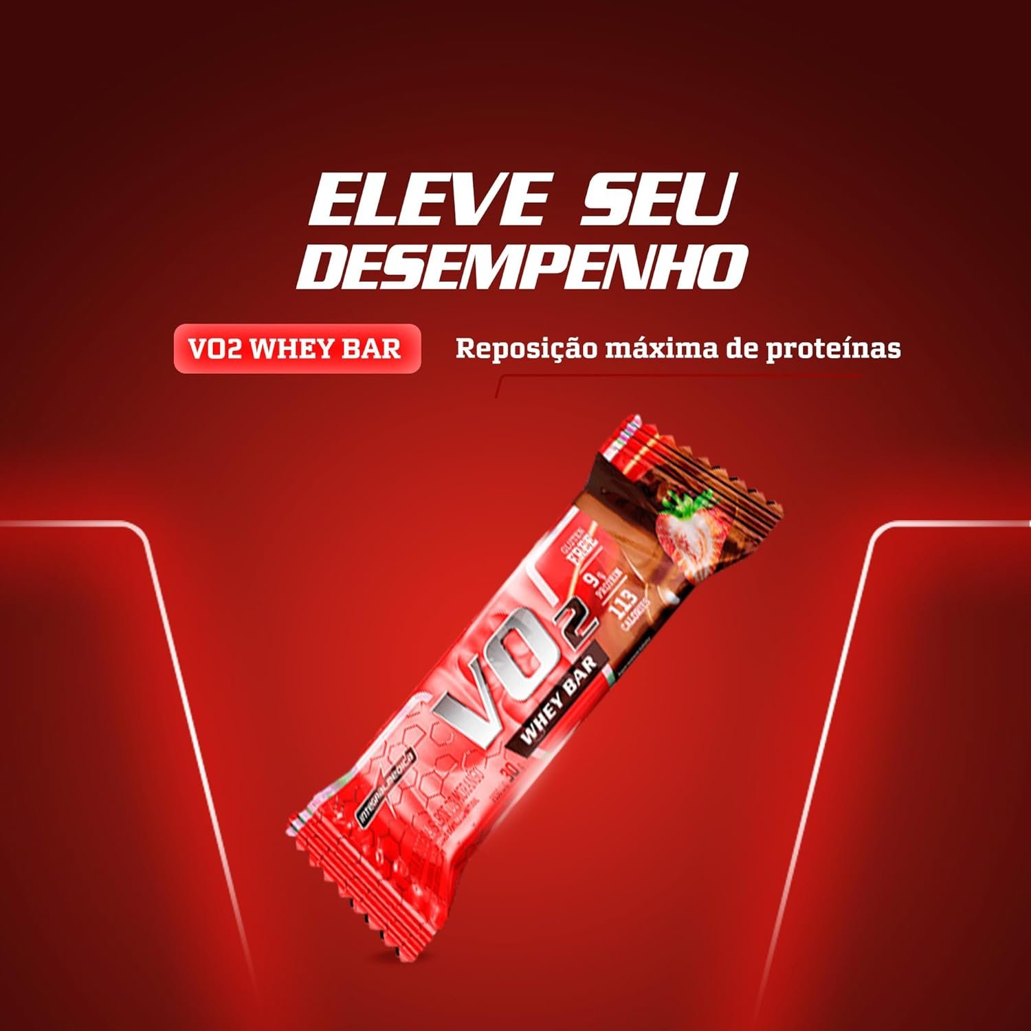 Barra Proteica VO2 Morango Display 12 Unidades 30g – Nutrição e Praticidade – Integralmedica