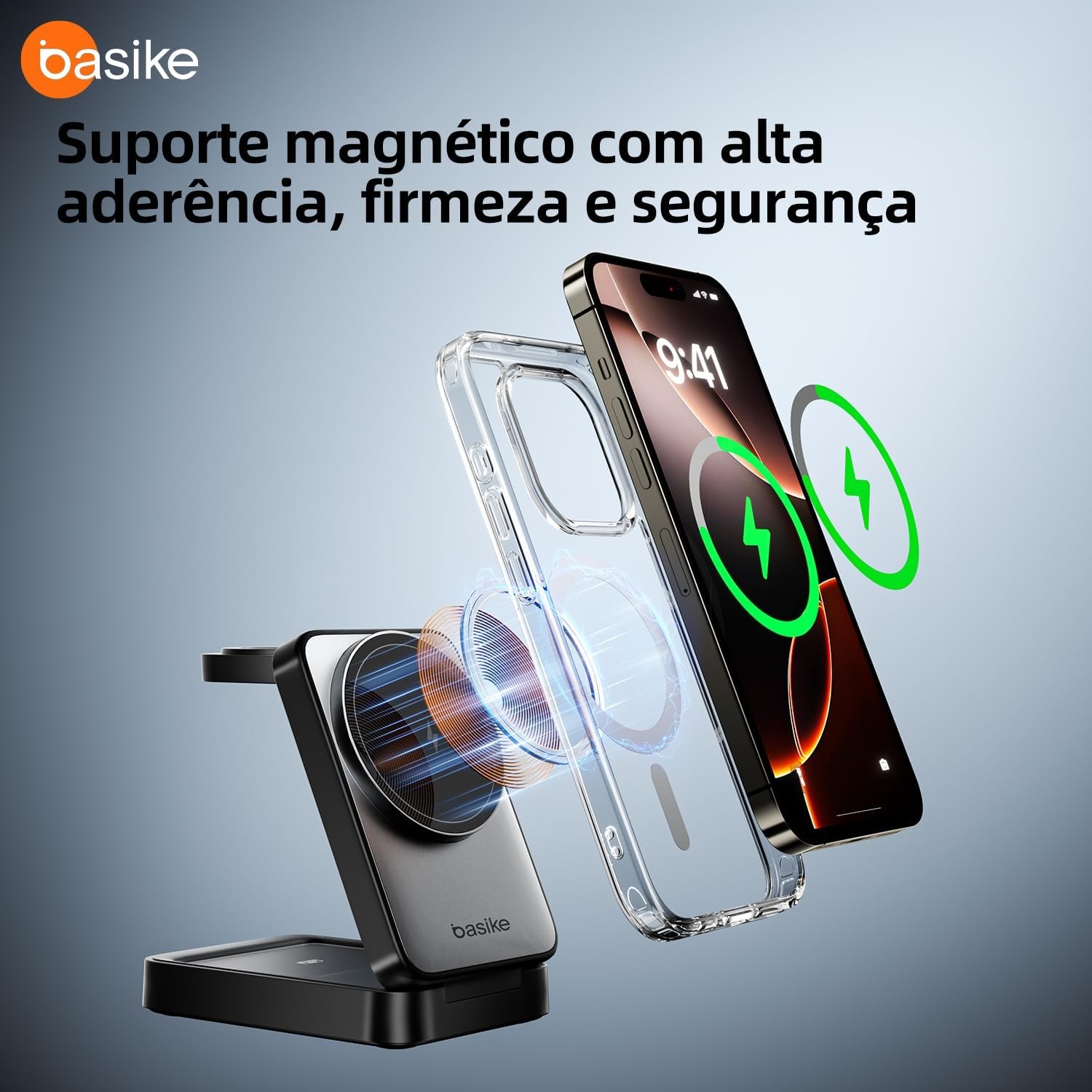 Basike Carregador Sem Fio 3 em 1 Magnético 2025, Estação de Carregamento Portátil com Luz Noturna, Dobrável e Compatível com MagSafe, iPhone 16/15/14/13/12, Apple Watch e AirPod (Preto)Basike Carregador Sem Fio 3 em 1 Magnético 2025, Estação de Carregamento Portátil com Luz Noturna, Dobrável e Compatível com MagSafe, iPhone 16/15/14/13/12, Apple Watch e AirPod (Preto)