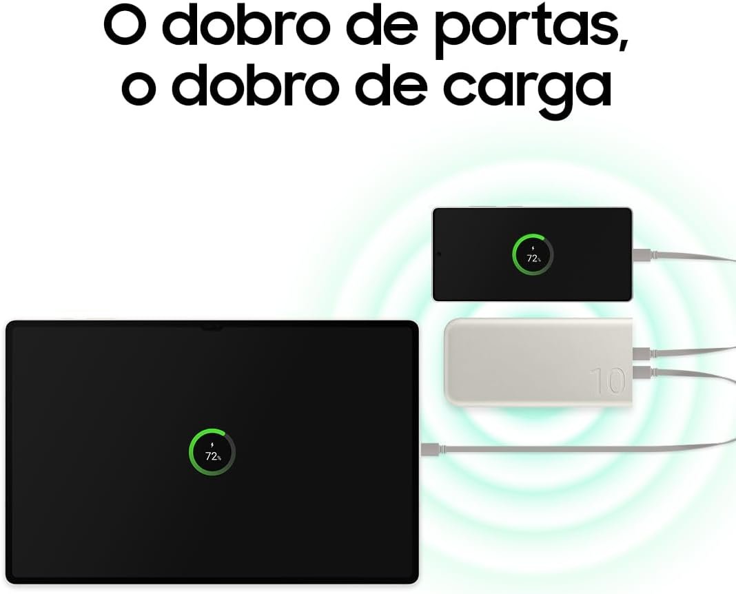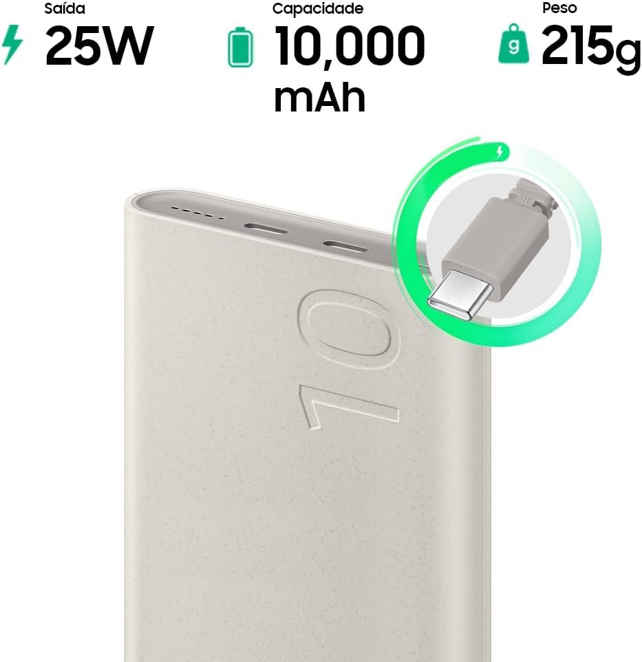 Bateria Externa SAMSUNG EB-P3400 Bege Portátil, Carga Super Rápida 25W, Duas Saídas USB-C 10000 MAH