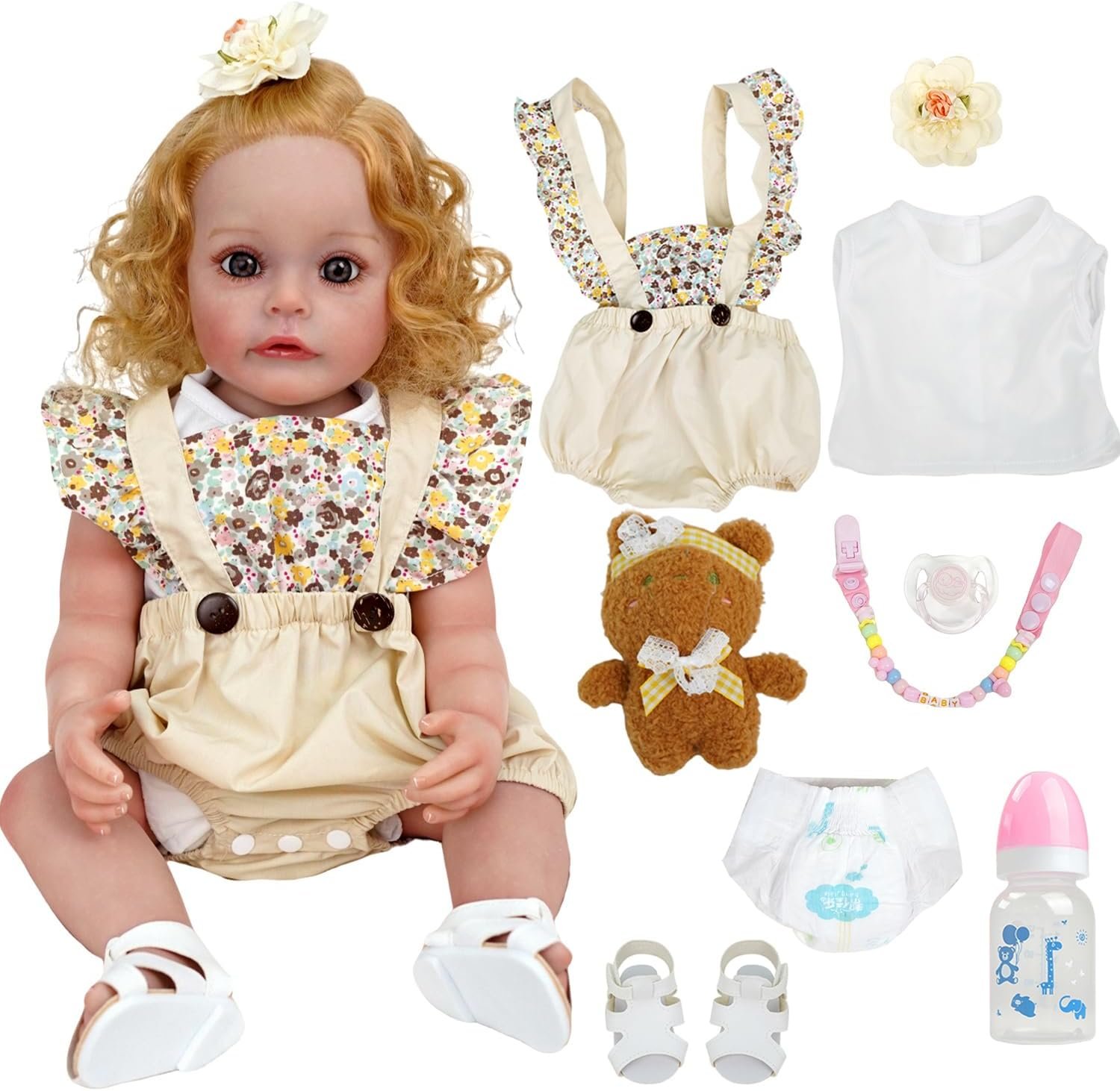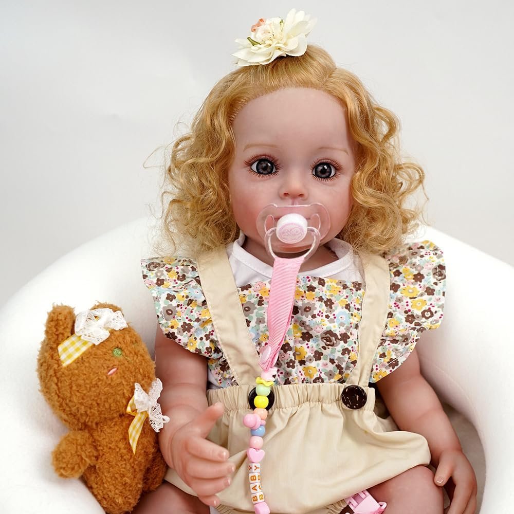 Bebê Reborn Boneca Silicone Menina Loira Realista 55cm Olhos Azuis Pode Dar Banho