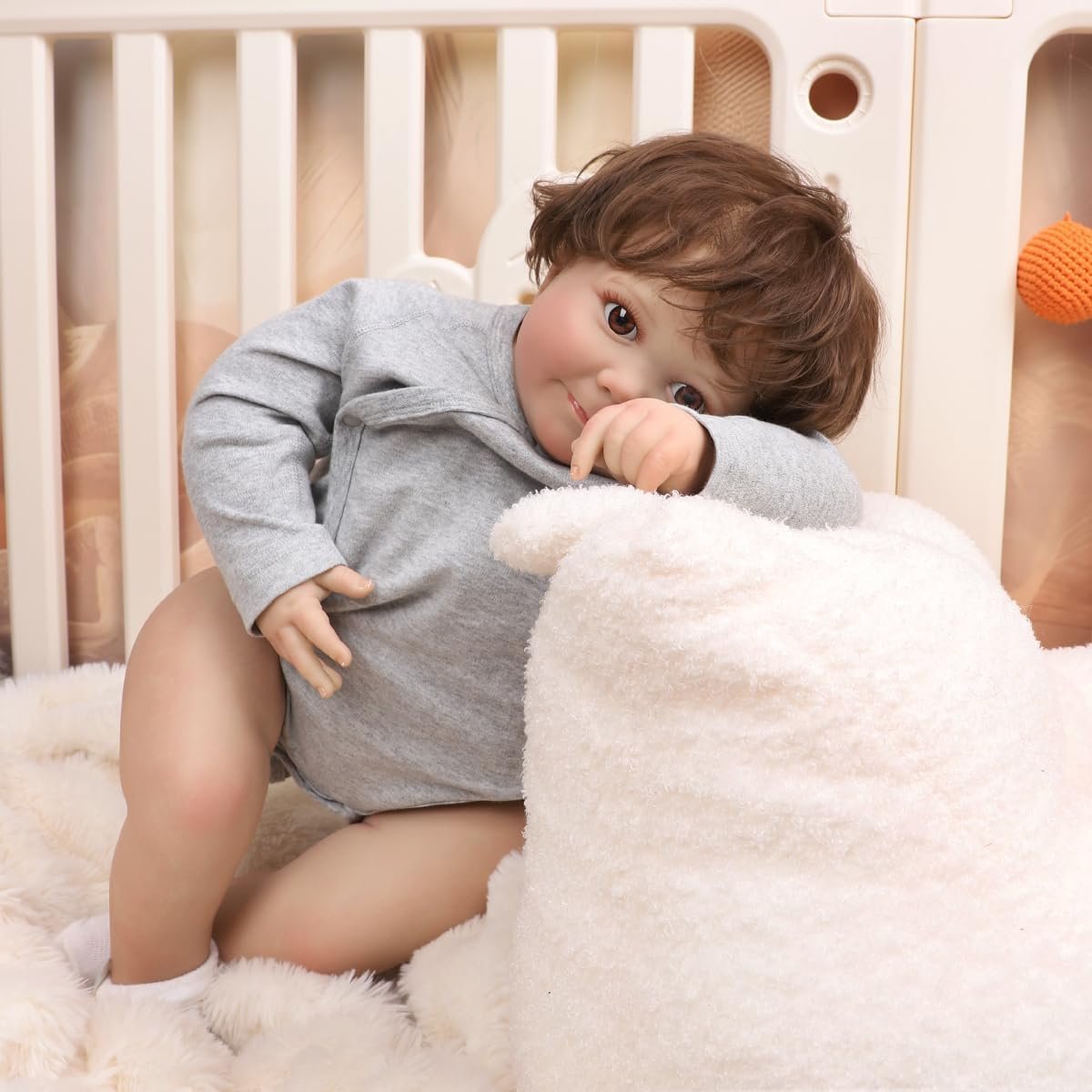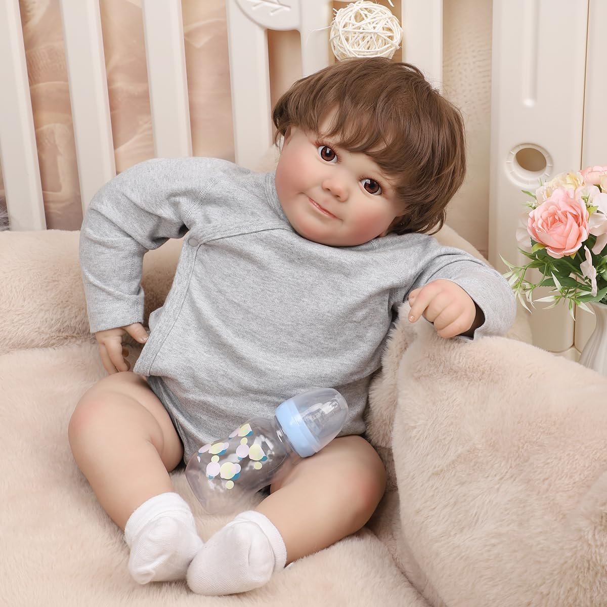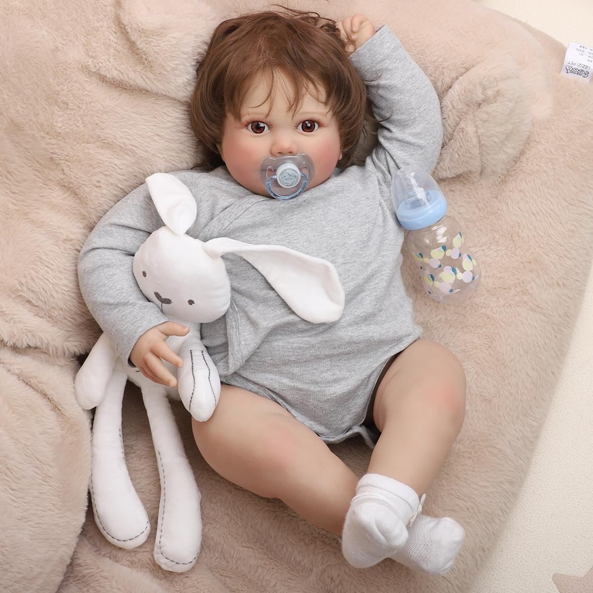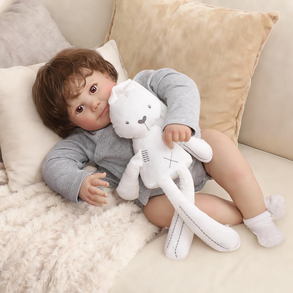 Bebê Reborn Menino Boneco 60cm Corpo de Pano Olhos Castanhos