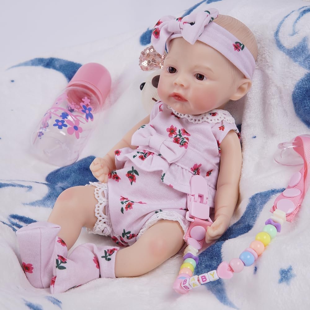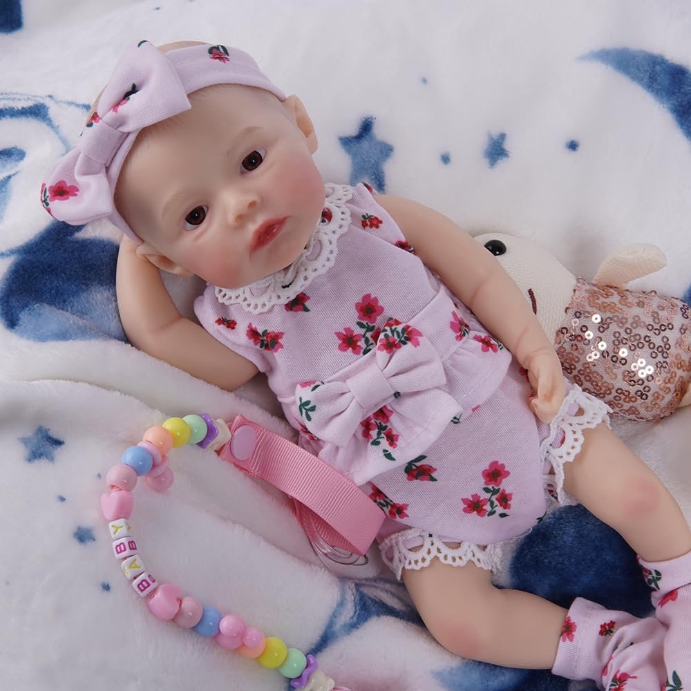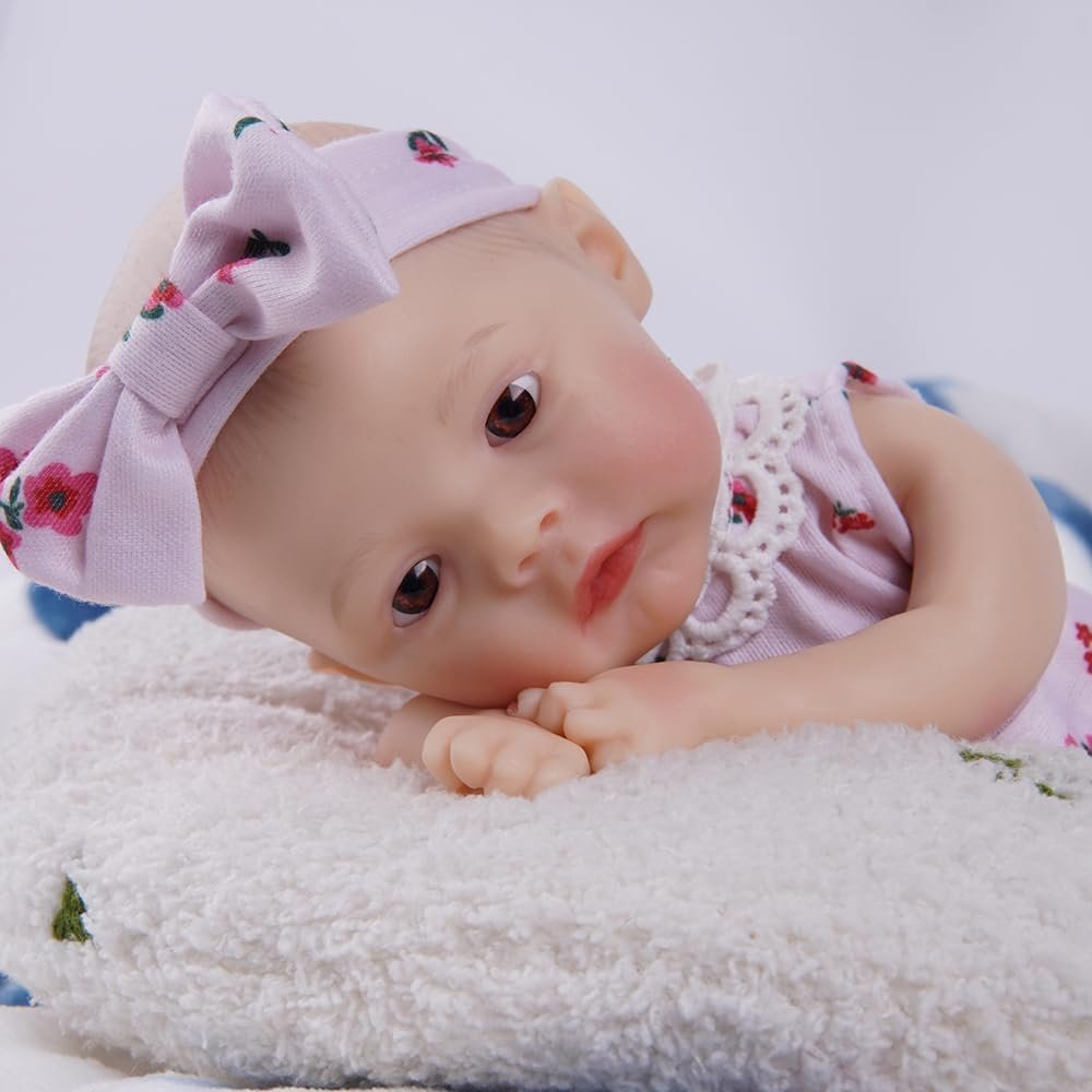 Bebê Reborn Silicone Sólido Boneca Menina Suave Olhos Castanhos 30cm Com Chupeta Magnética