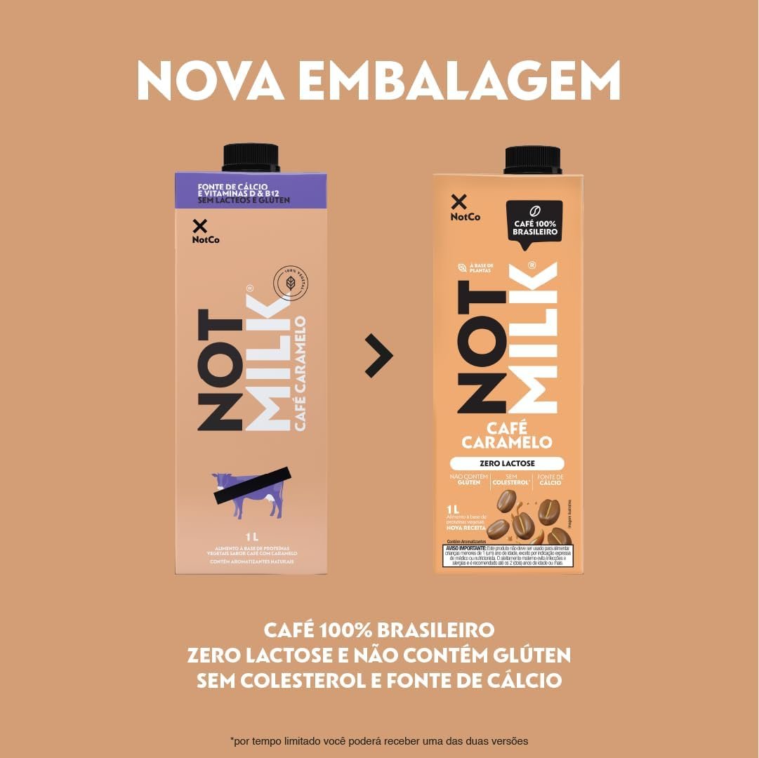Bebida Vegetal NotCo NotMilk Café Caramelo 1L, Feito com Ingredientes 100% Vegetais, Sabor Leite com Café, Sem Lactose, Sem Glúten, Para Bebidas Quentes e Frias, Plant-Based, Vegano, Vegetariano.