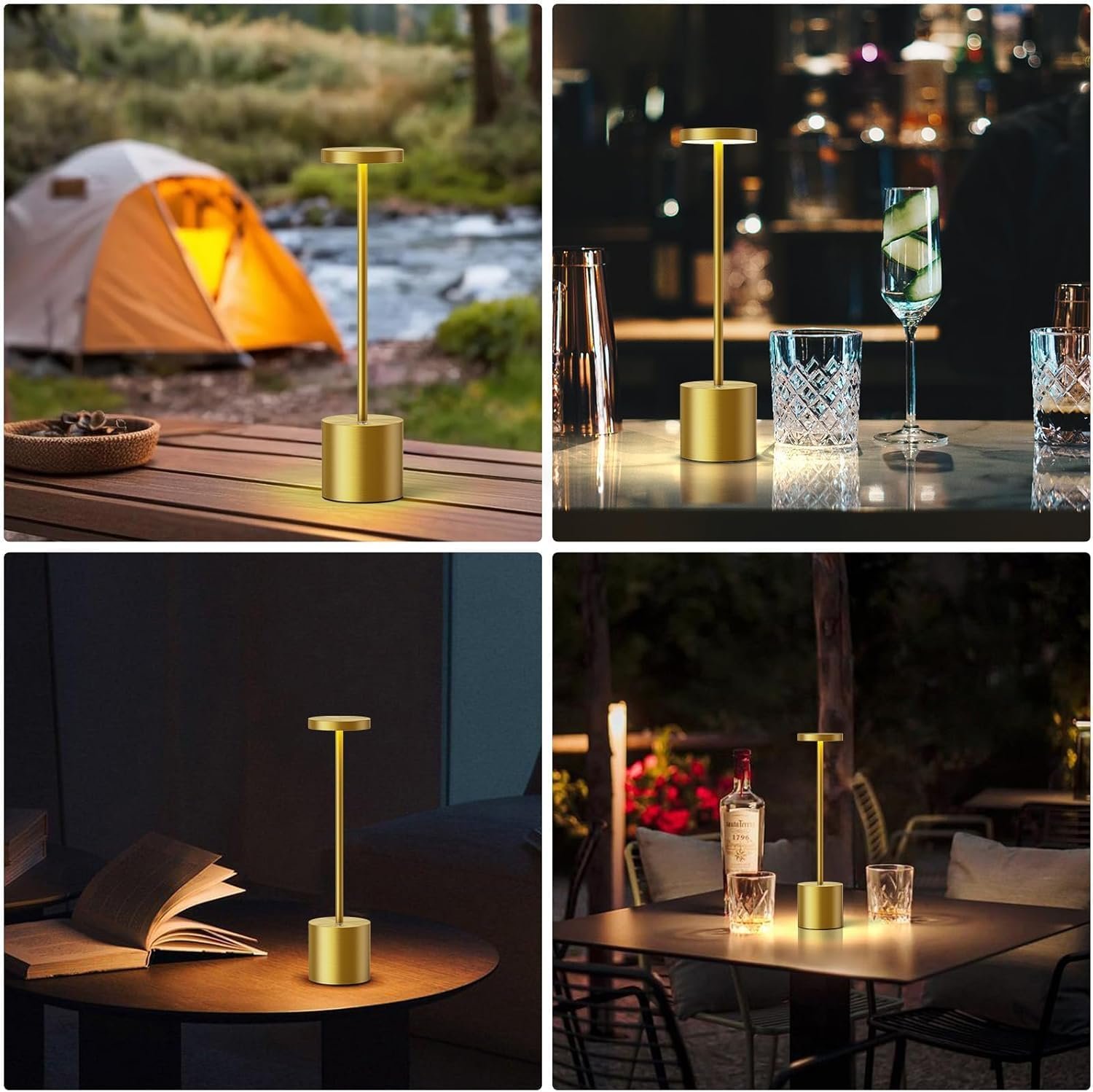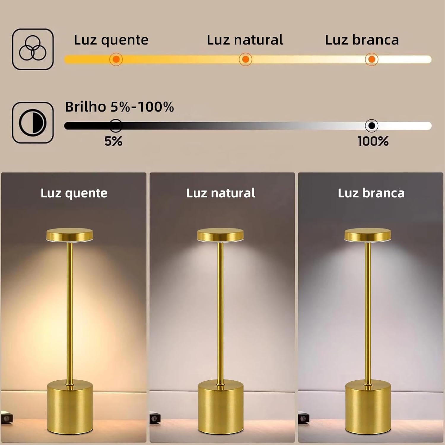 BEMMY Luminária de Mesa 1800mAh,Luminária Abajur Mesa Led Dimerizável Sem Fio Recarregável, Toque Candeeiro de Mesa USB Luz Noturna, Iluminação de 3 Tons