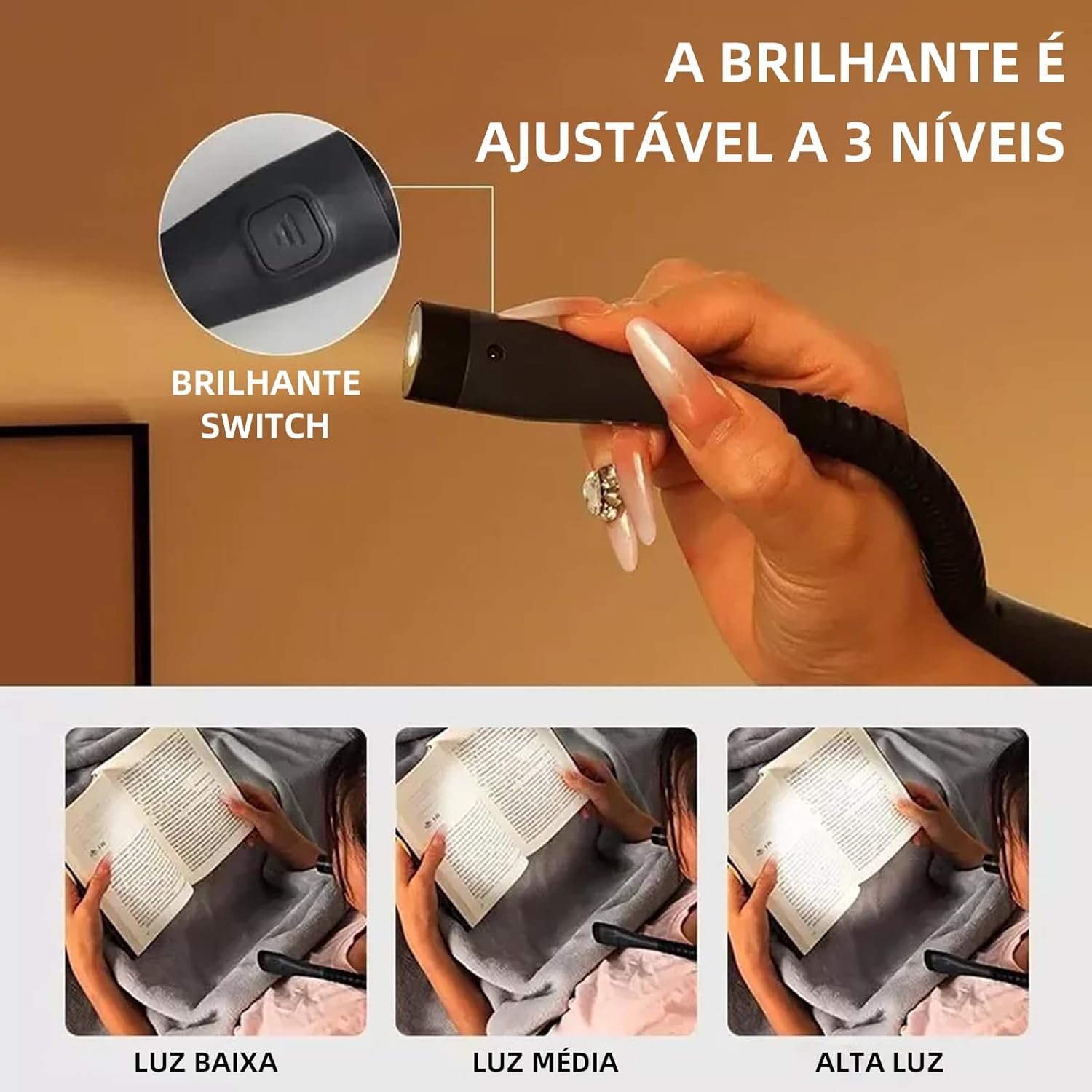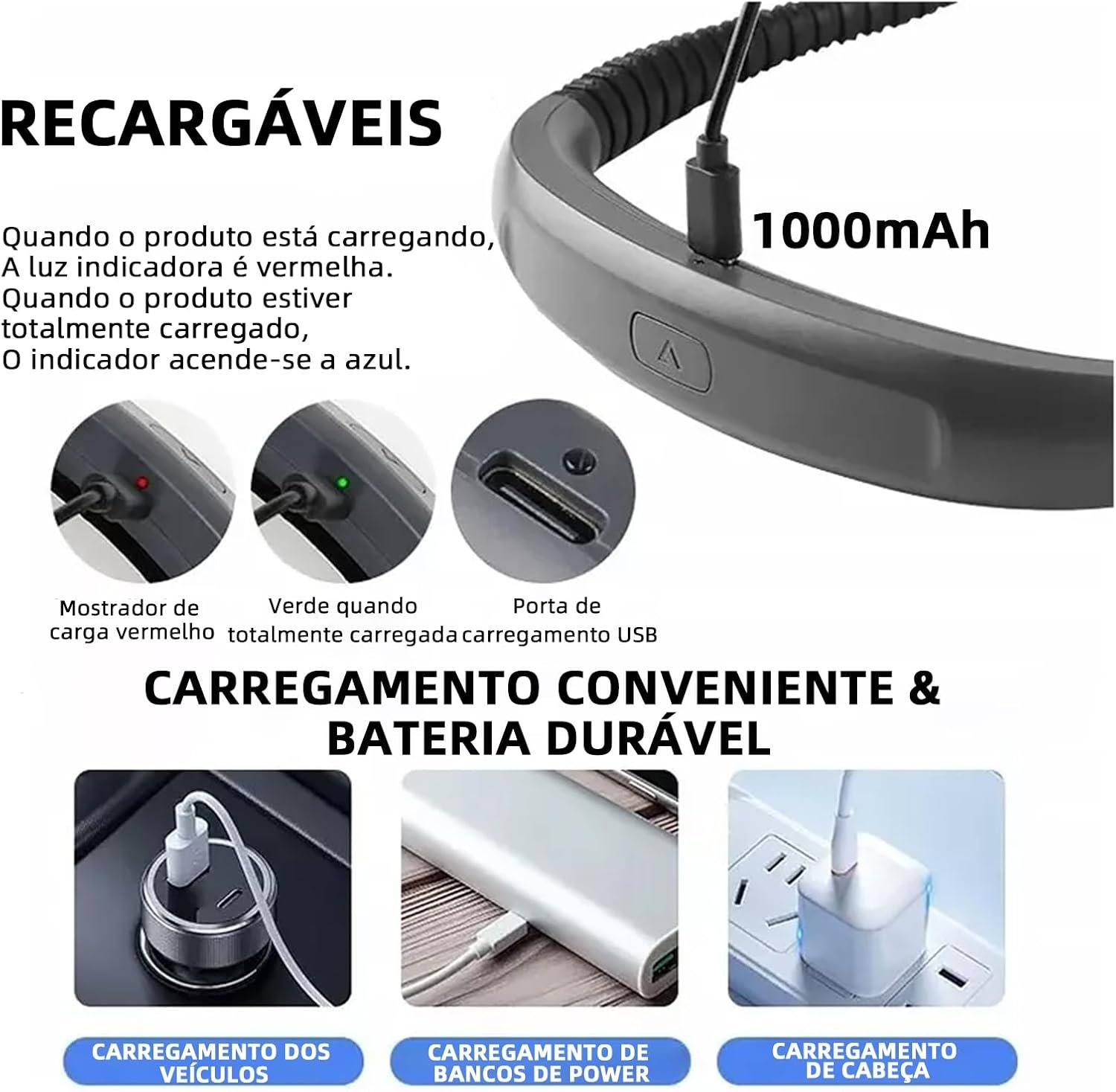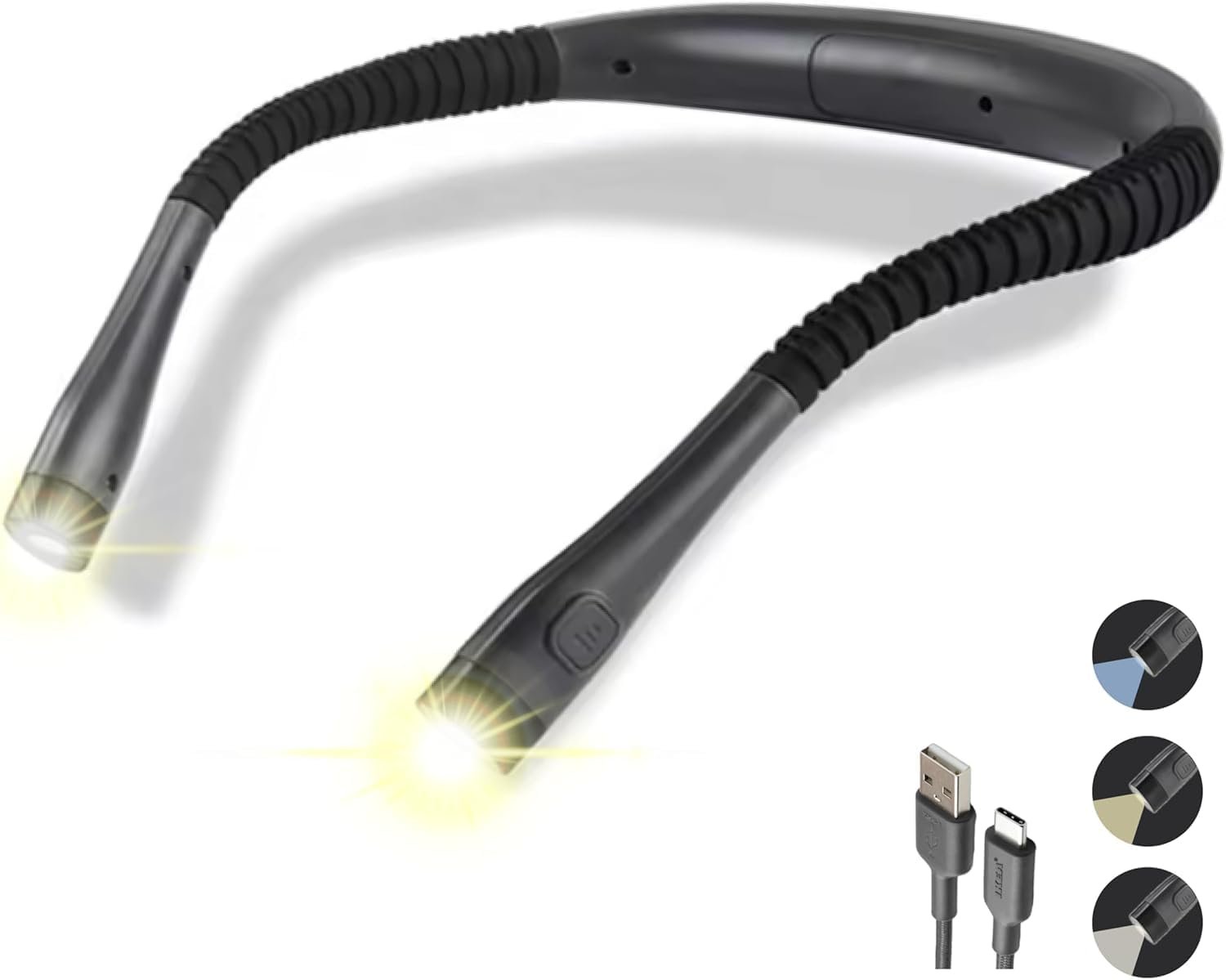BEMMY Luz de Leitura Recarregável, Luz de Pescoço Dobrável com 3 Cores, Portátil e de Larga Duração para Leitura, Crochê e Costura, Luminaria de Livro 1000mAh. A única Loja Autorizada “Bemmy-BR”.
