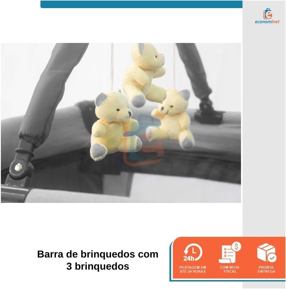 Berço Portátil Infantil Joly Baby Style com Mosquiteiro, Barra de Brinquedos, Trocador e Bolsa – Seguro, Confortável e Compacto INMETRO (Cinza)