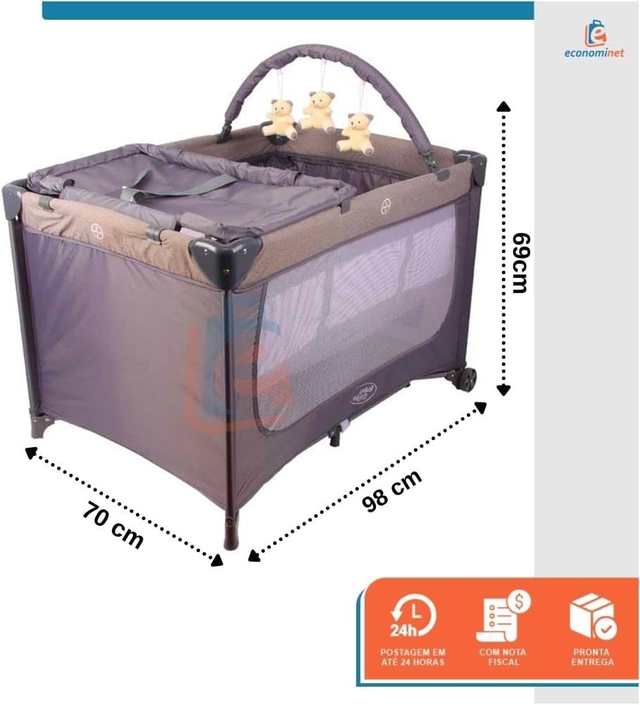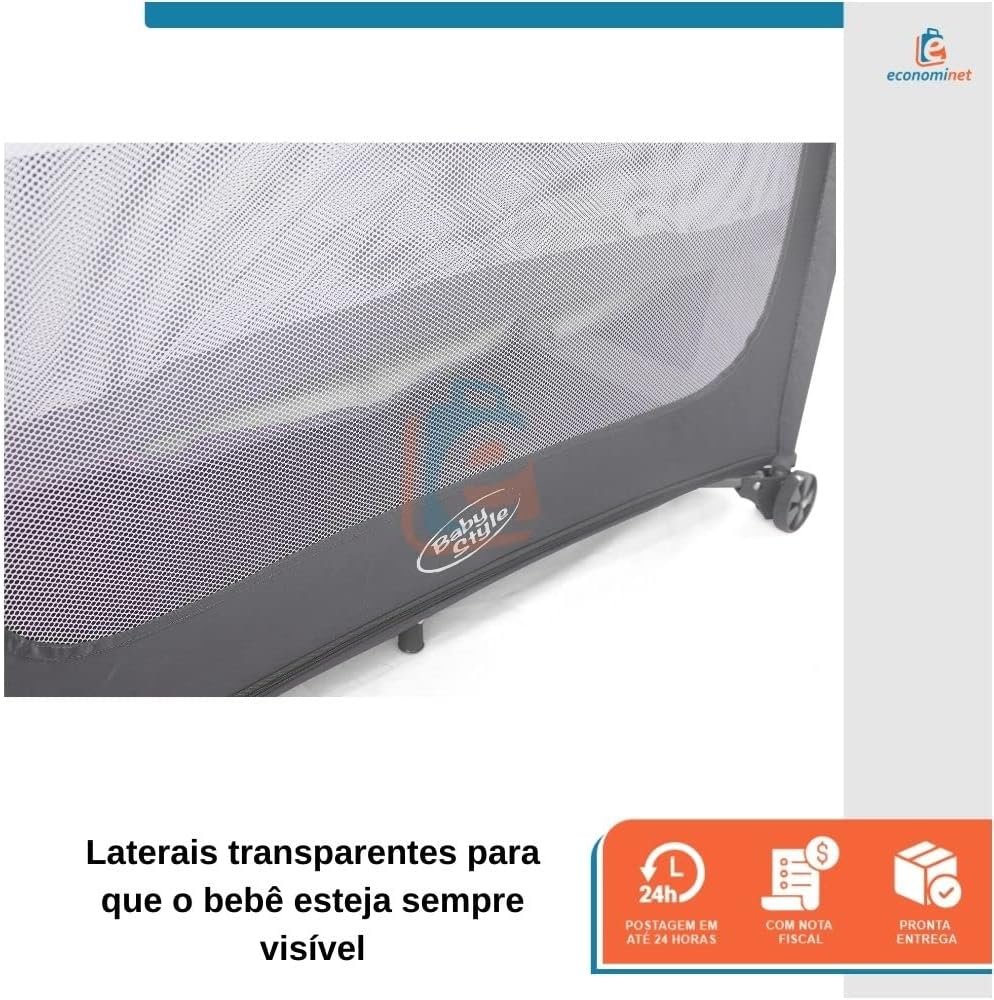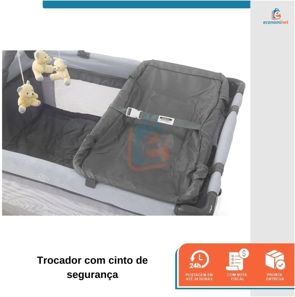 Com design compacto e certificado pelo INMETRO, este berço é ideal para viagens, passeios e para uso diário. Seu bebê terá um espaço seguro e aconchegante para descansar, brincar e trocar fraldas, enquanto você tem a tranquilidade de saber que ele está protegido.