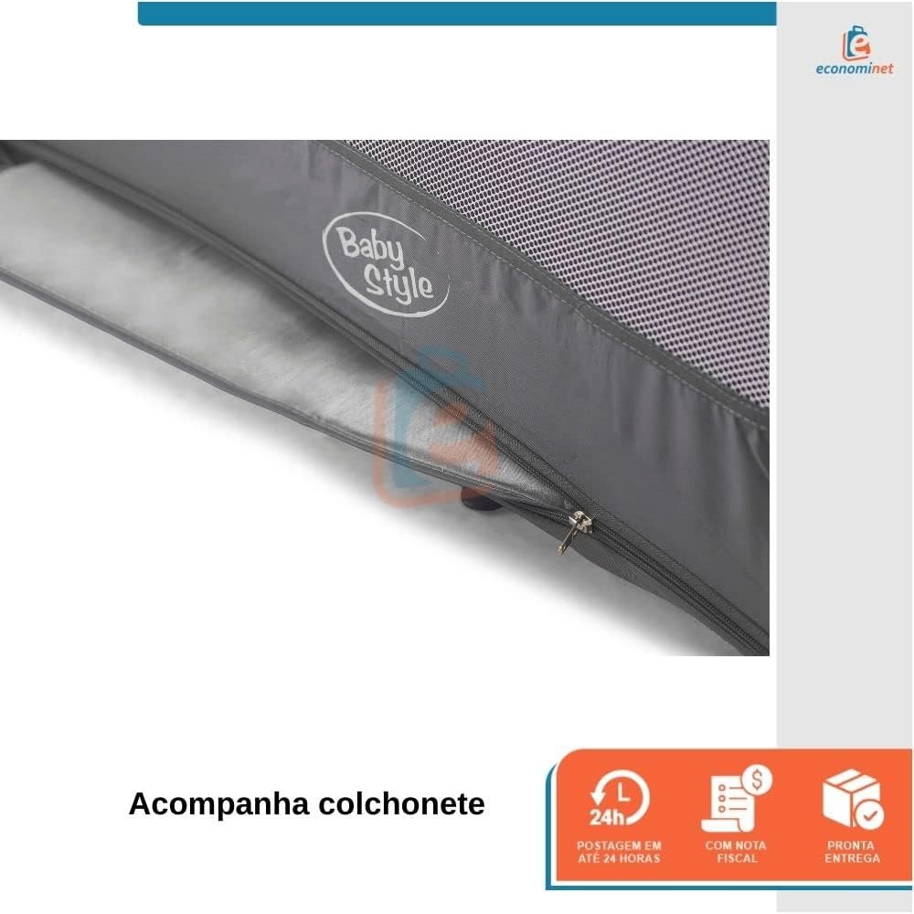 A cor cinza neutra e elegante combina com qualquer ambiente, tornando-se uma peça essencial para o enxoval do seu bebê. Garanta agora mesmo o Berço Portátil Infantil Joly Baby Style e proporcione momentos de conforto e diversão para o seu pequeno!