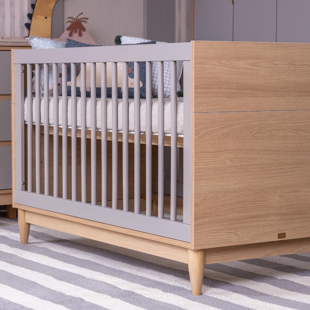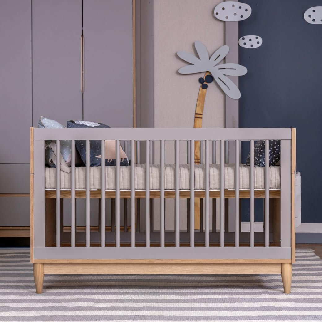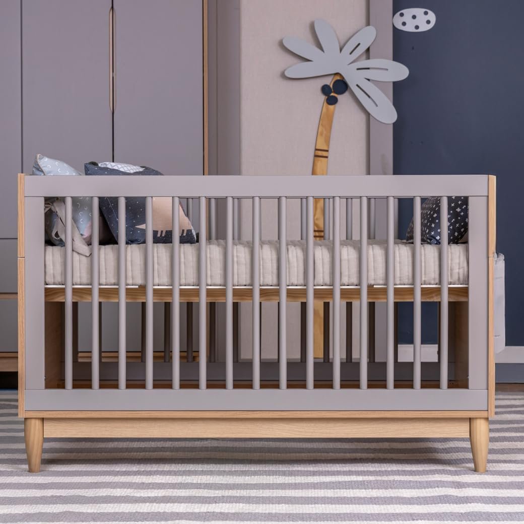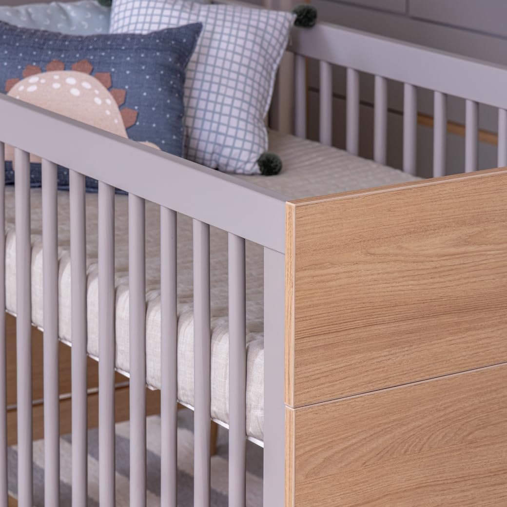 Berço Quater Cinza com Carvalho Malva 2 em 1 Linha Tomi