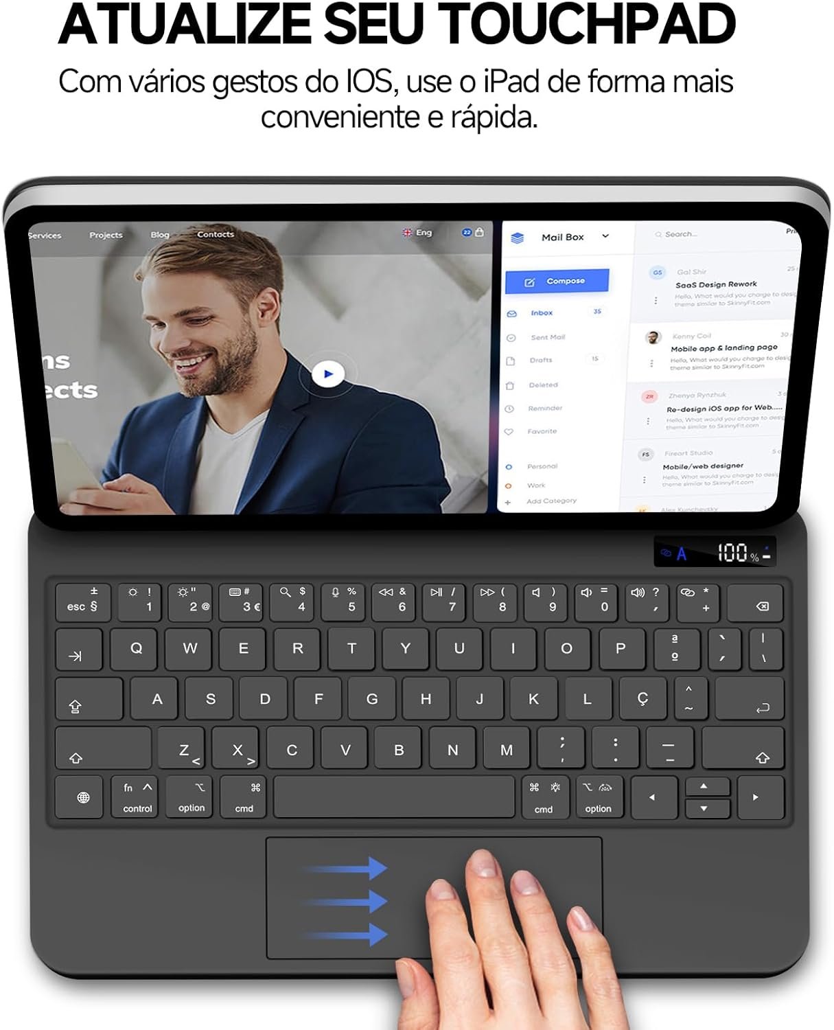 Bettdow Capa com Teclado e trackpad para iPad 10ª Geração 10.9″ Polegadas, iPad (A16) 11th Generation 11 Inch 2025; modelos A2696,A2757,A2777,A3354,A3355 e A3356 com Auto Hibernação(Branco)