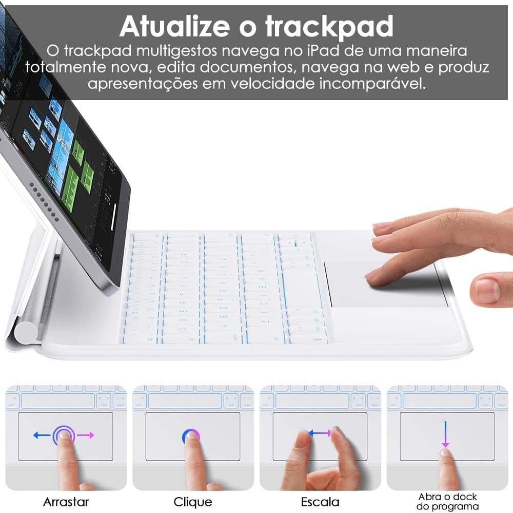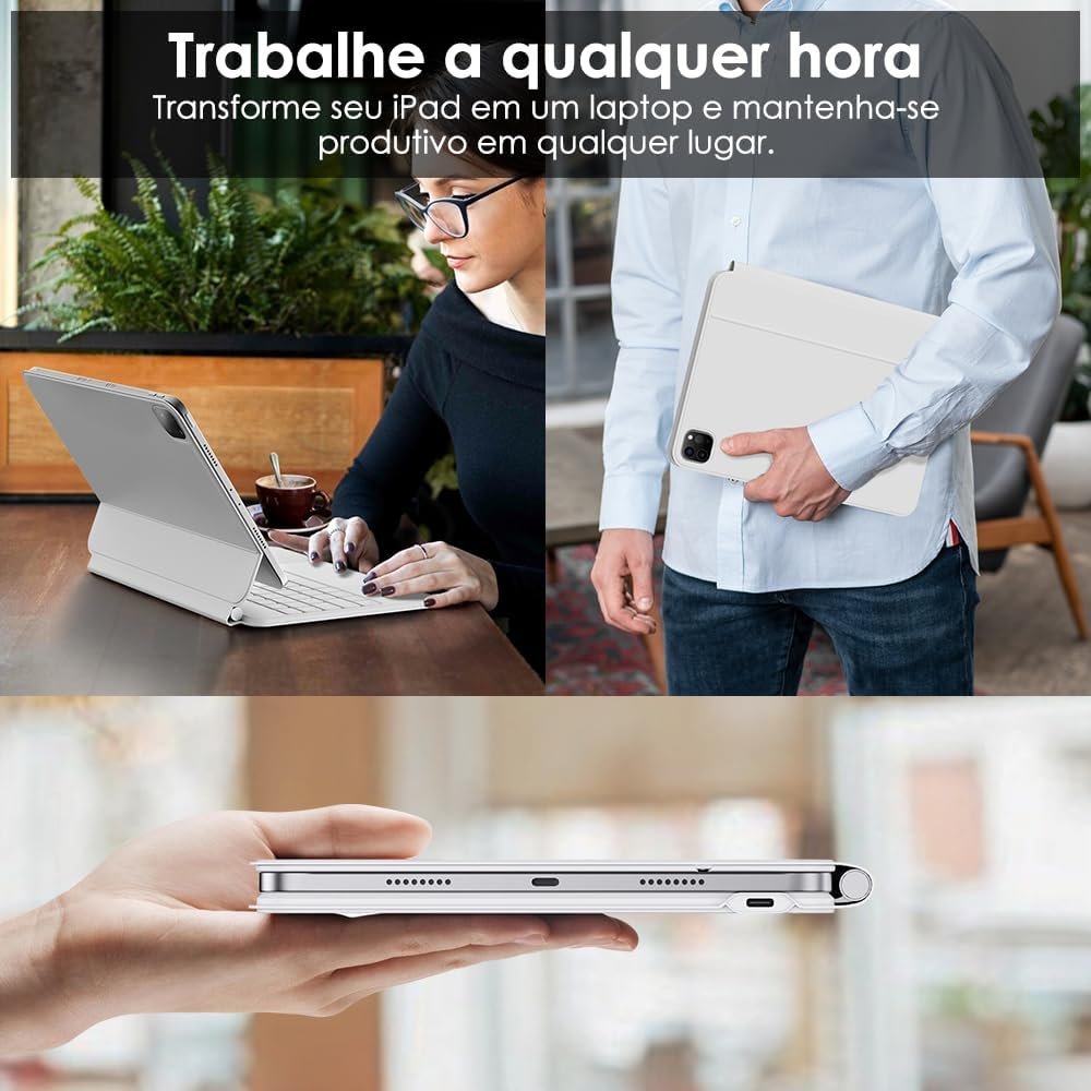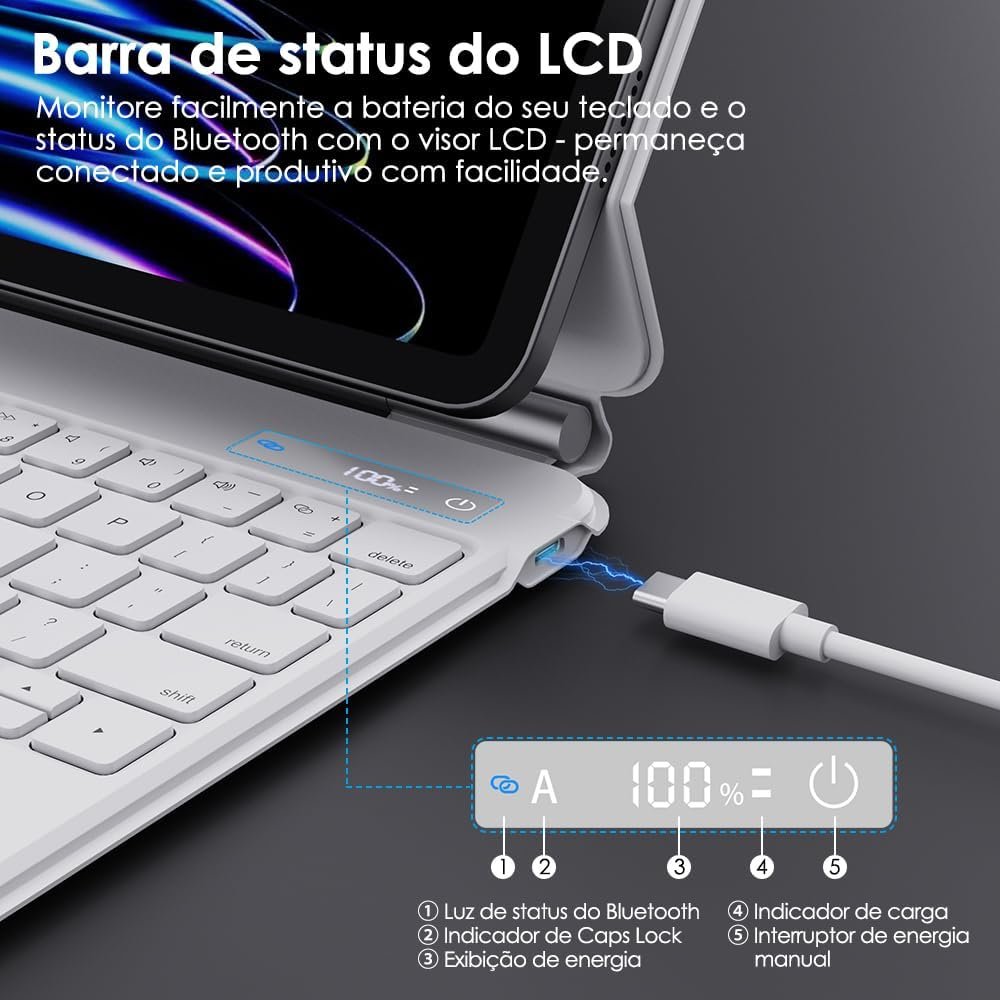 BETTDOW Capa com Teclado e Trackpad para iPad Pro de 11 polegadas (4ª/3ª/2ª/1ª) geração 2022 e Air 6ª e 11 polegadas (M2, 2024) e iPad Air 5ª/4ª geração de 10,9 polegadas,Teclado com LCD DisplayBrancoBETTDOW Capa com Teclado e Trackpad para iPad Pro de 11 polegadas (4ª/3ª/2ª/1ª) geração 2022 e Air 6ª e 11 polegadas (M2, 2024) e iPad Air 5ª/4ª geração de 10,9 polegadas,Teclado com LCD DisplayBranco