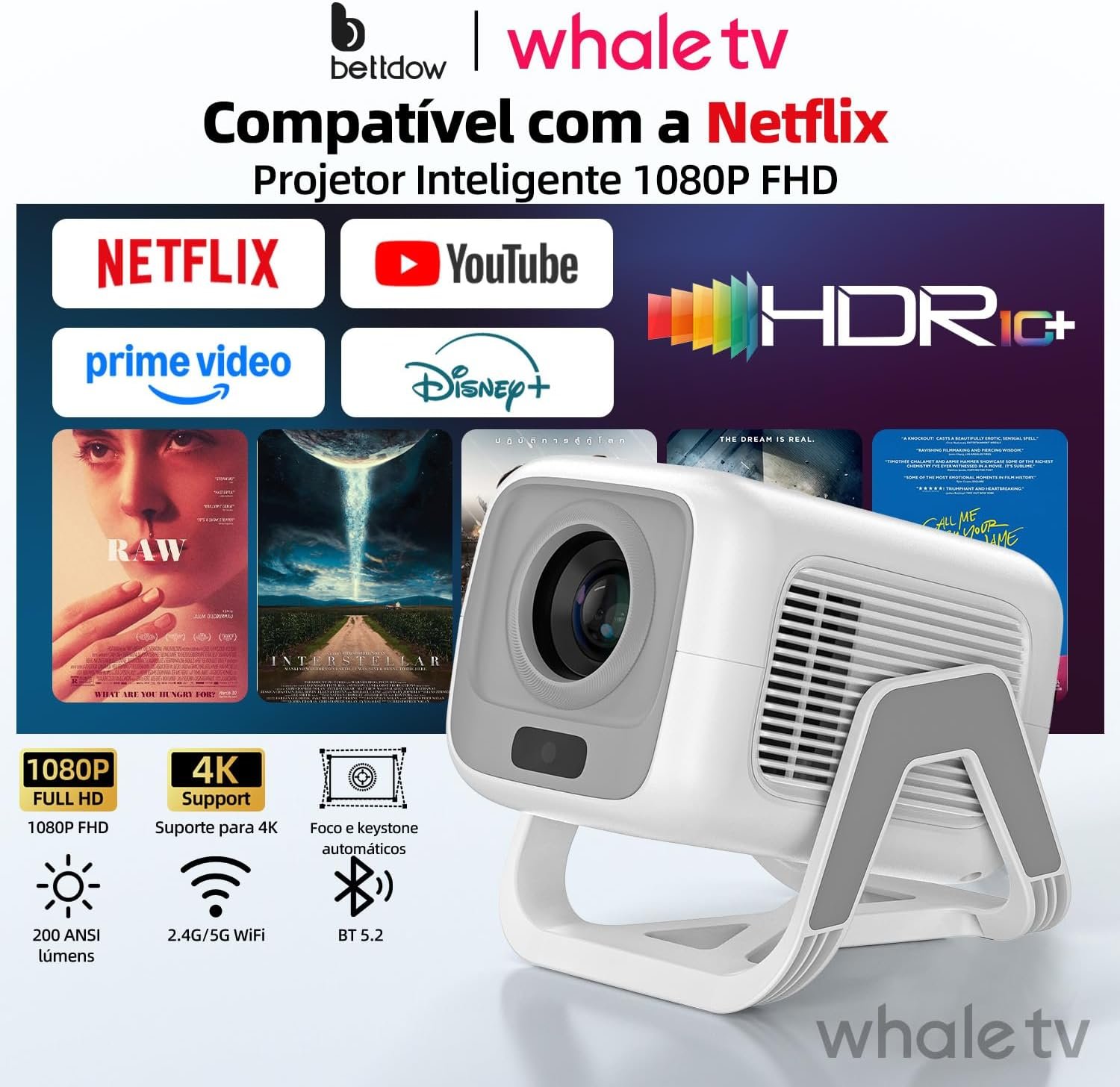 ![Bettdow Projetor 4k [Netflix-Licensed], Projetores Portatil 12000 Lumens Full Hd 1080p Compatível Com Android 13, HDR10+ Retroprojetor WiFi 6 BT 5.2, Keystone automático, Foco Automático - Imagem 3](https://pegapromo.online/wp-content/uploads/2026/01/71J1EImqinL._AC_SL1500_.jpg)