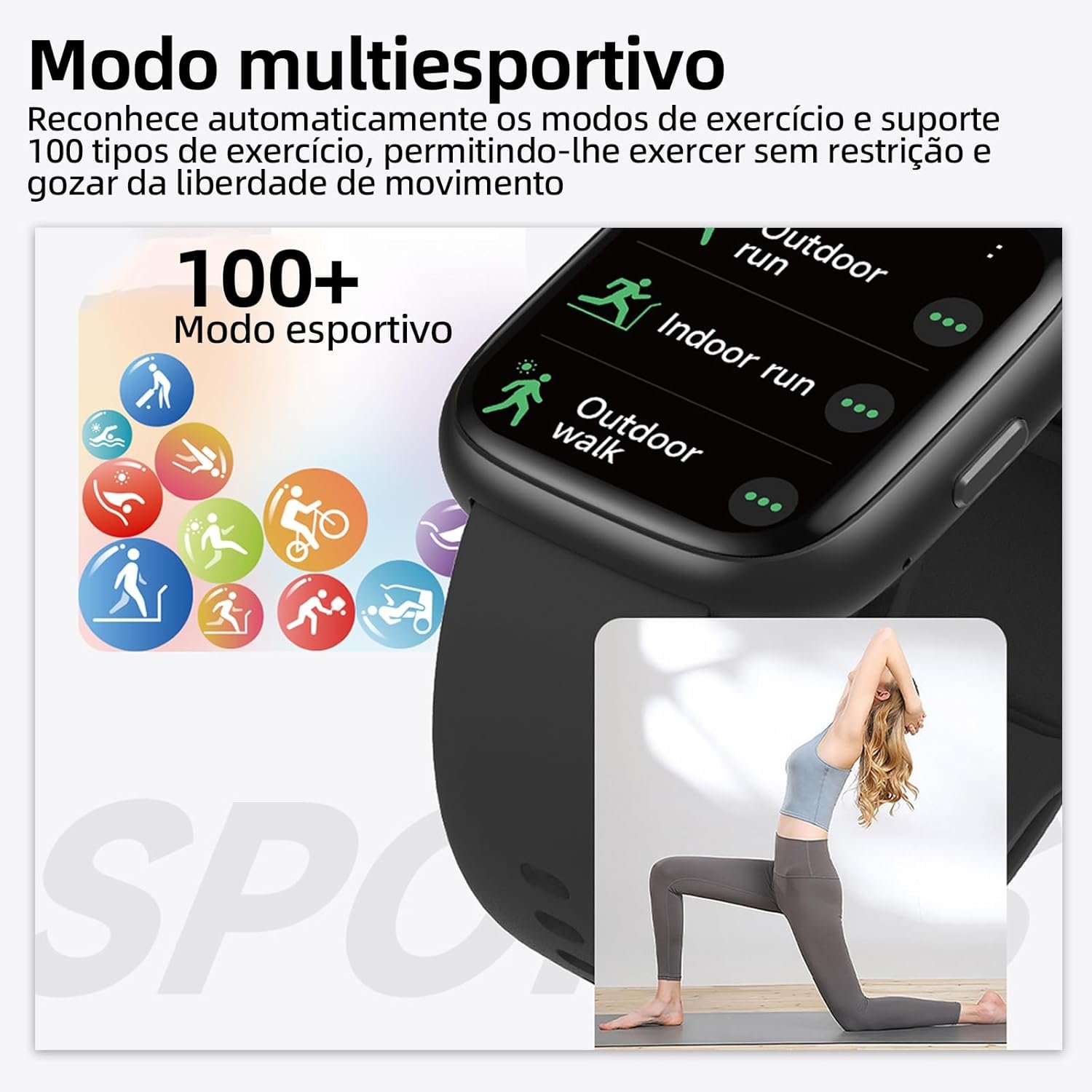 Descrição: O Bettdow SmartWatch é o parceiro perfeito para o seu dia a dia, oferecendo praticidade e tecnologia avançada. Com tela tátil e integração com a Alexa, você terá acesso a informações e assistência com apenas um toque. Além disso, sua resistência à água com certificação IP68 permite que você o utilize em diversas atividades, incluindo esportes aquáticos. Seu design unissex torna-o ideal tanto para homens quanto para mulheres, e o modo esportivo monitora suas atividades físicas com precisão. Receba notificações diretamente no seu pulso, mantendo-se sempre conectado e informado. Adquira já o Bettdow SmartWatch e experimente o que há de mais moderno em tecnologia wearable.