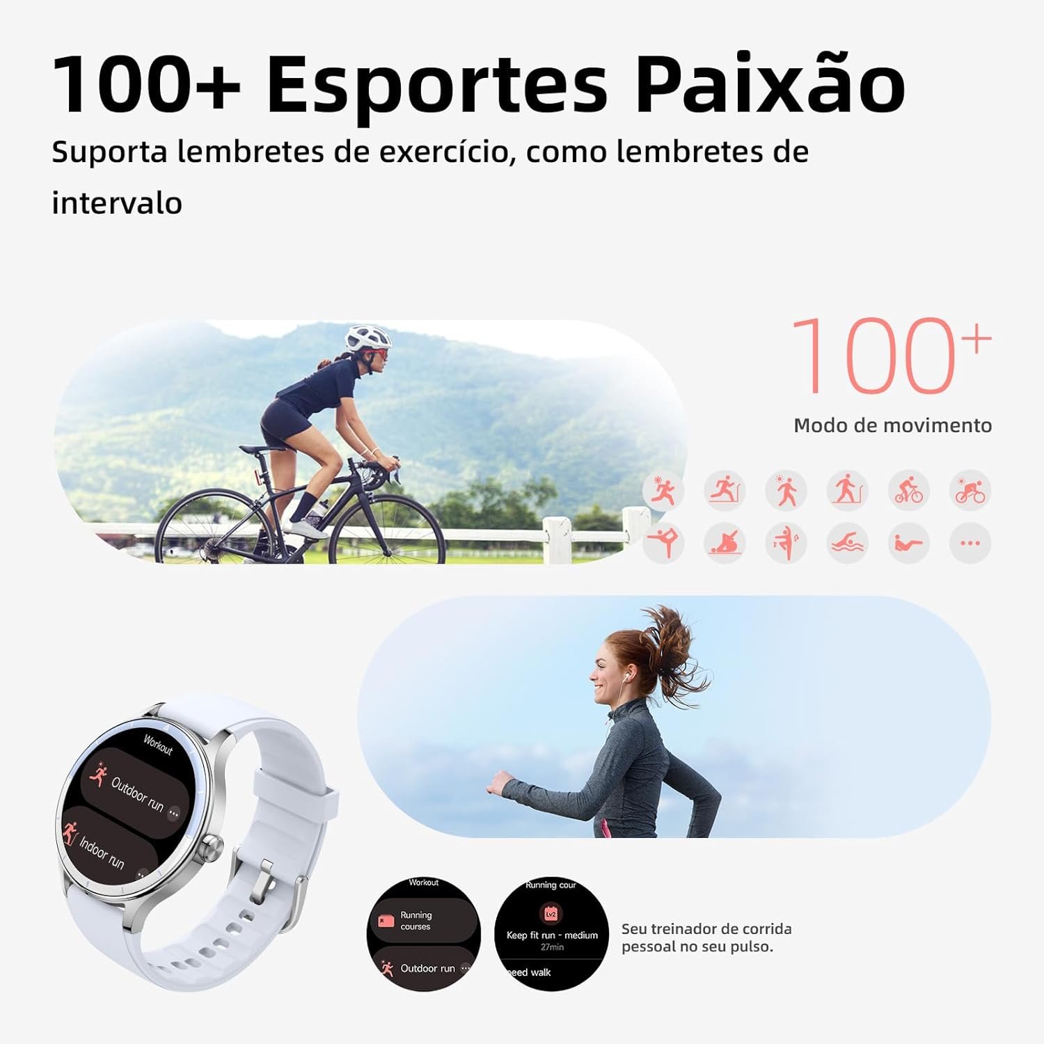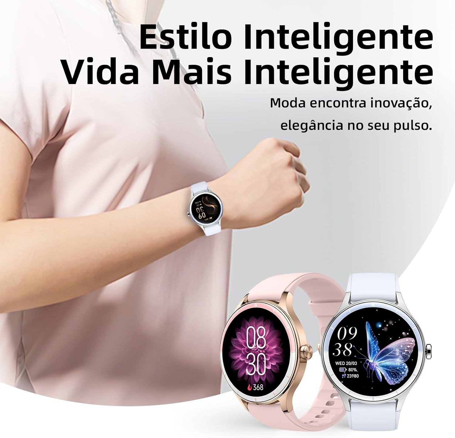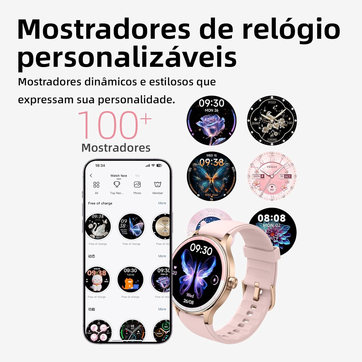 Bettdow SmartWatch, Relogio Smartwatch Feminino, 1.27″ Ecrã tátil, à prova d’água IP68, 100+ Modos Esportivos, chamada Bluetooth, Compatível com Android iOS, voz por IA (Rosa)