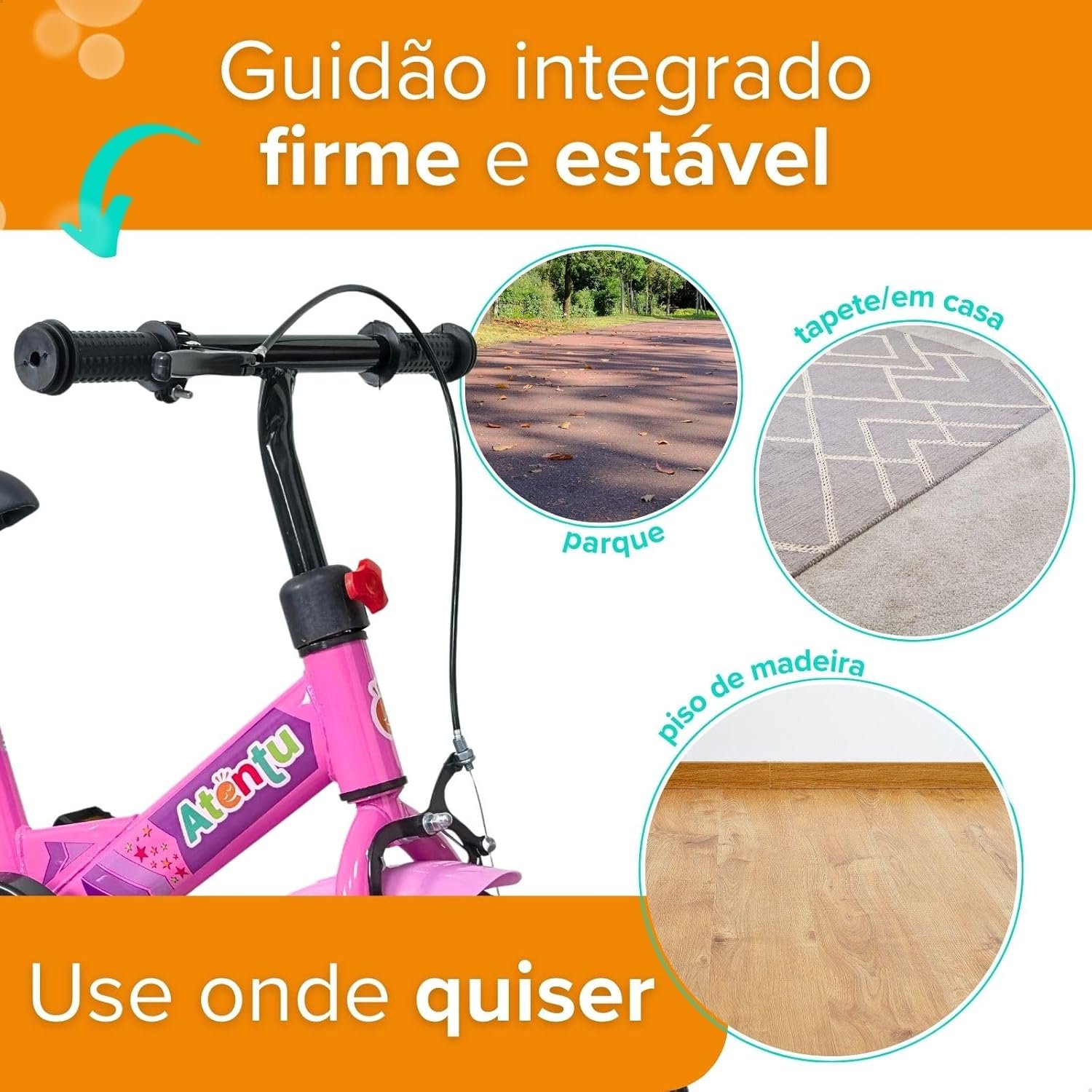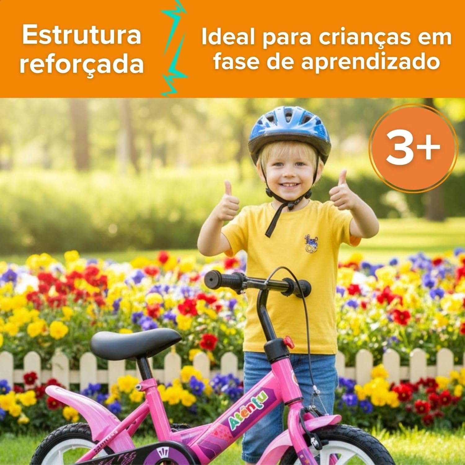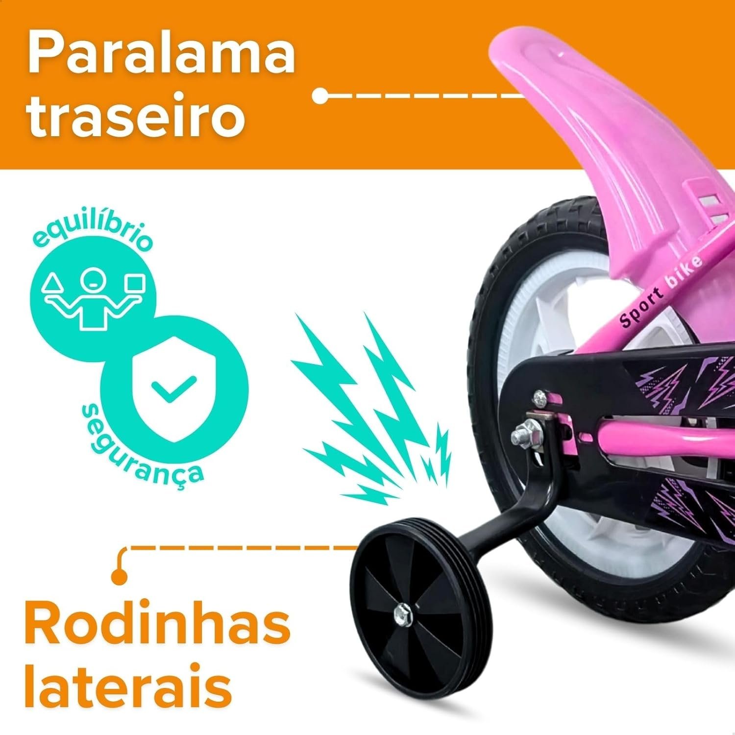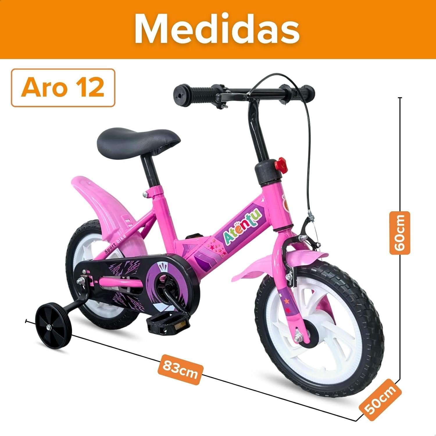 Bicicleta Infantil Aro 12 com Pedal e Rodinhas de Apoio para Menino e Menina, Modelo Educativo, Confortável e Seguro para Primeiros Passeios
