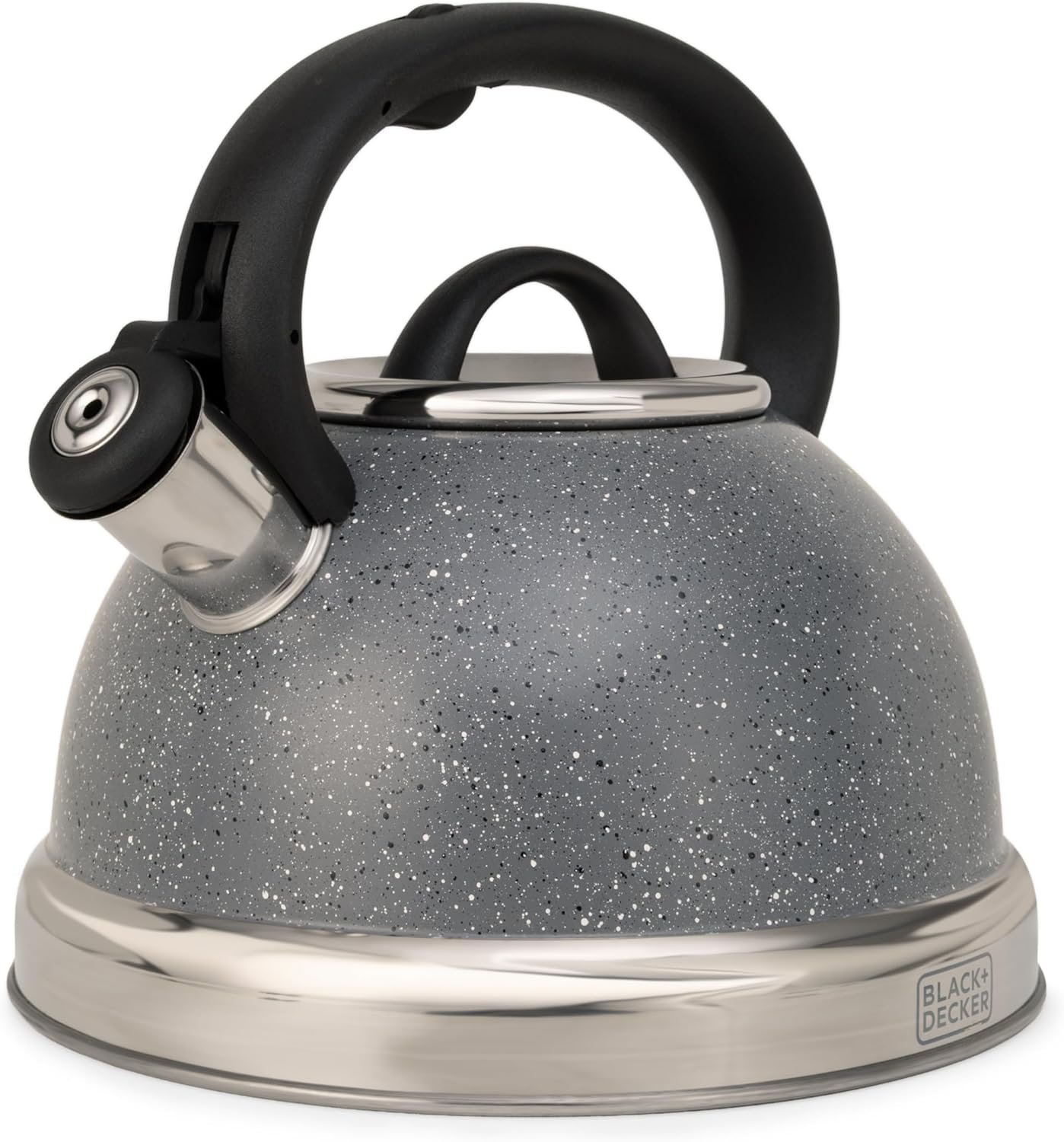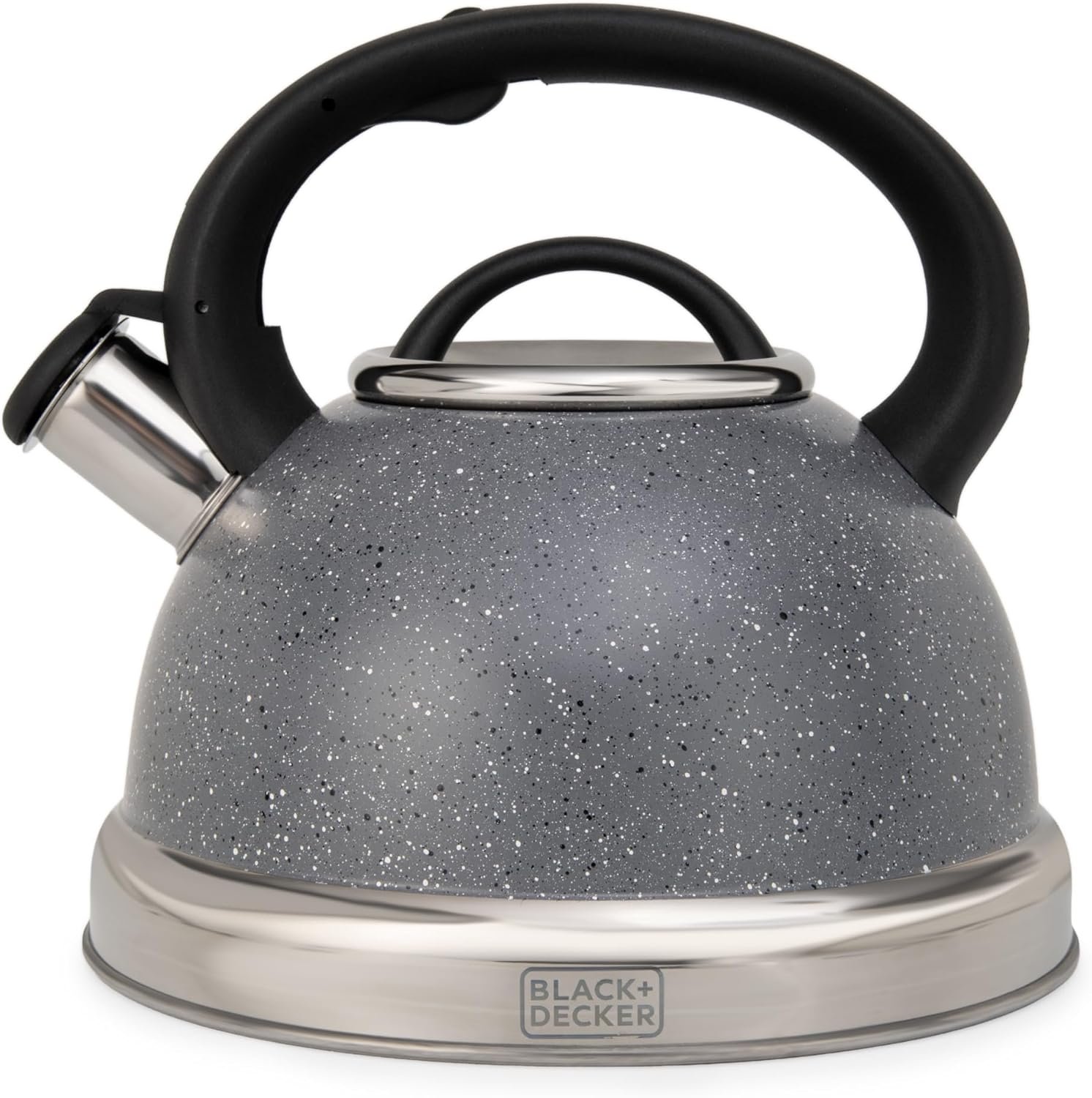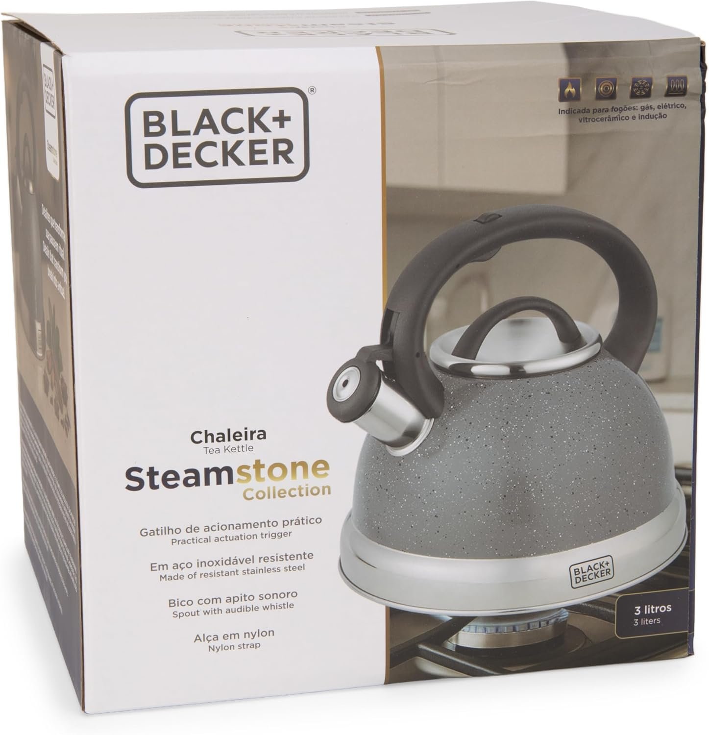 BLACK+DECKER Chaleira com Apito 3 Litros Steam&Stone – Corpo em Aço Inoxidável com Acabamento Marmorizado na Cor Dark Grey, Base Compatível com Indução e Cabo em Nylon Resistente