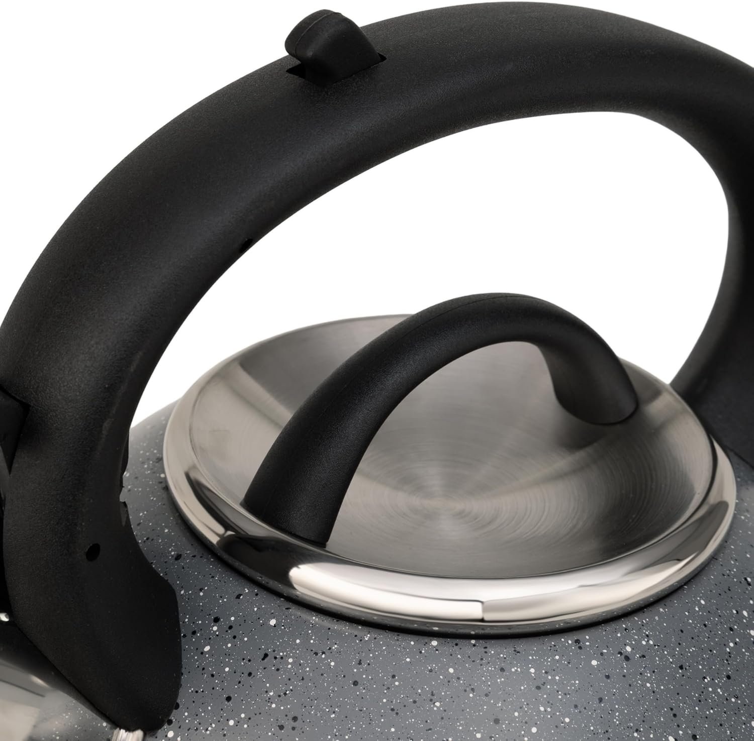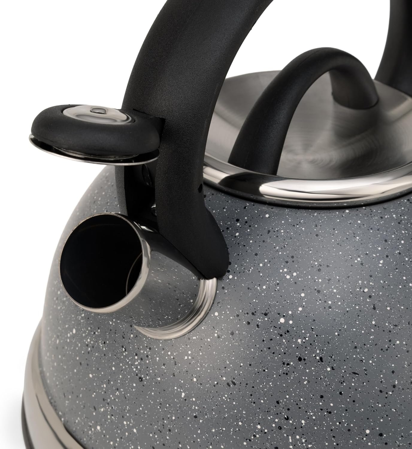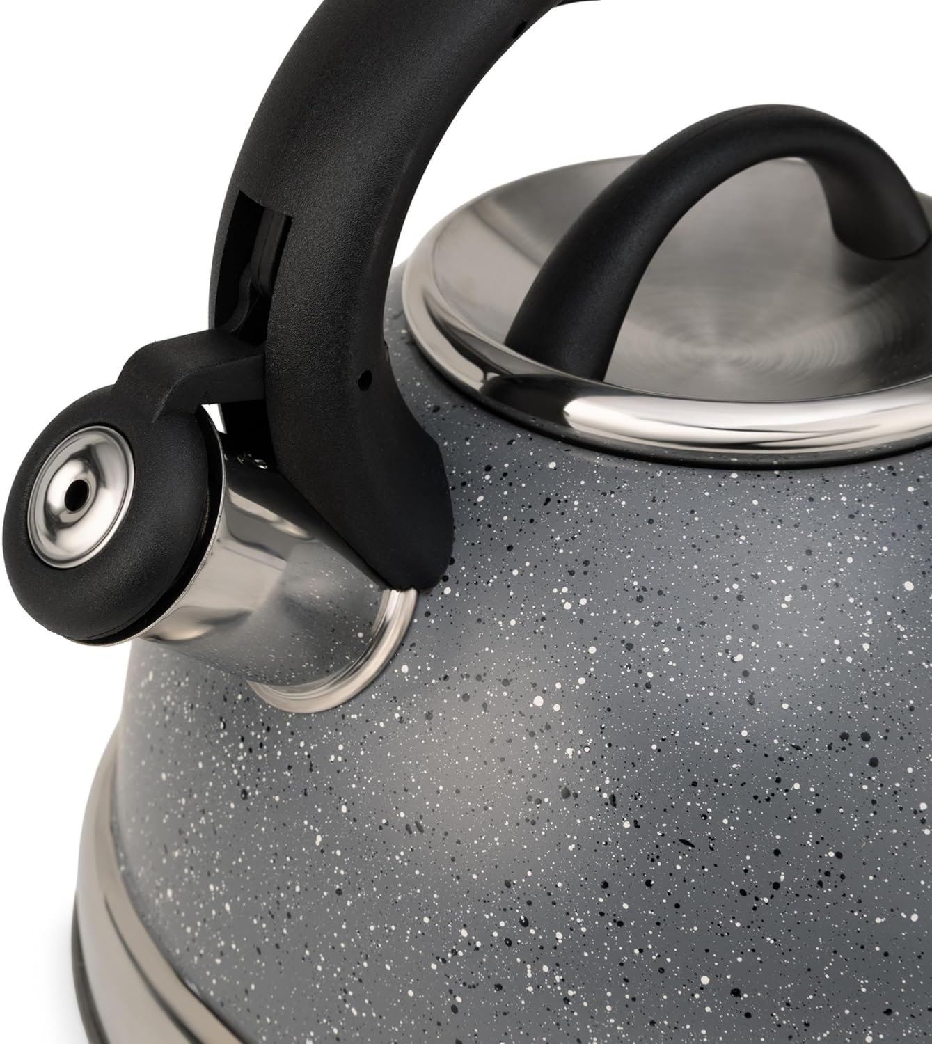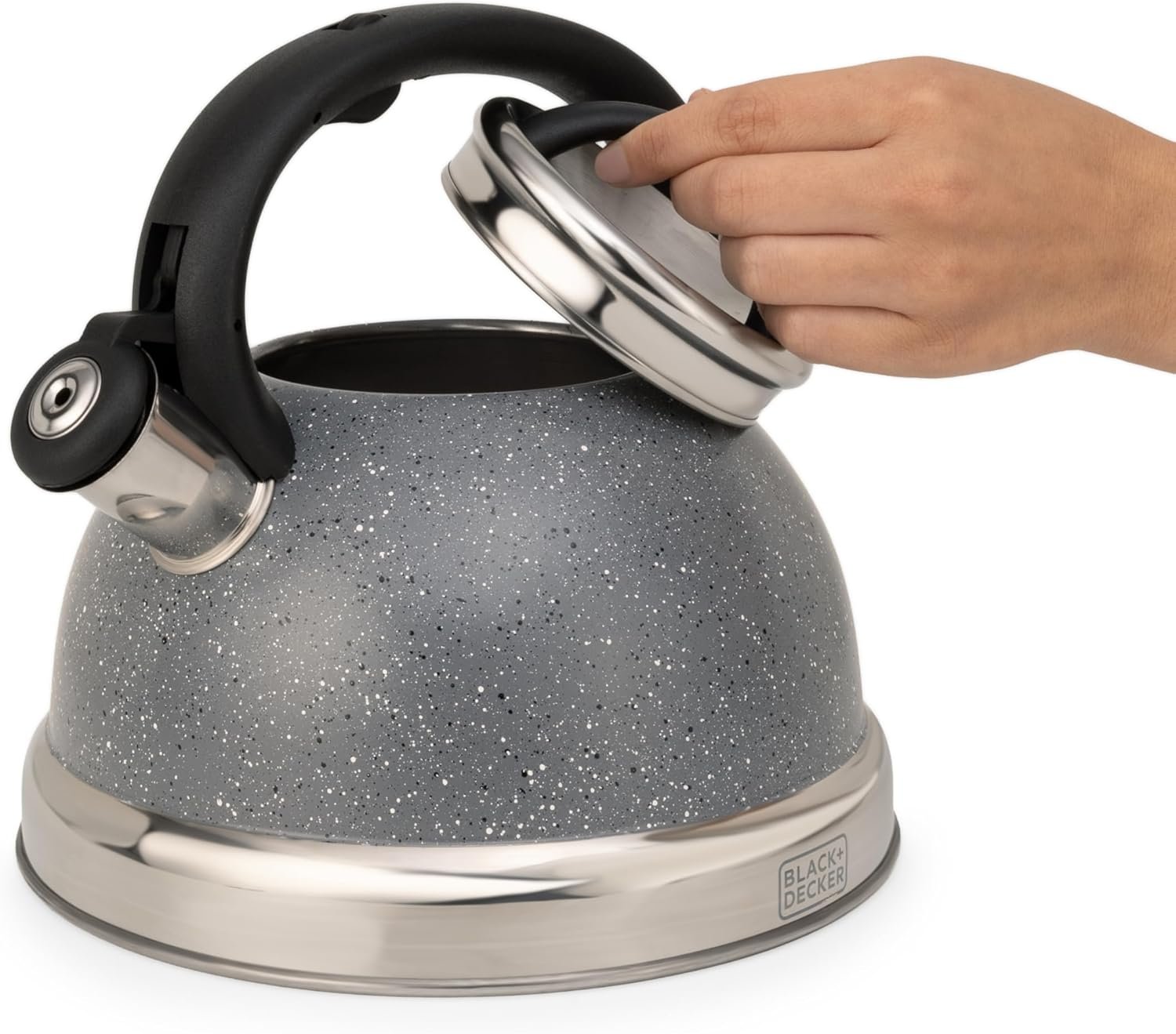 BLACK+DECKER Chaleira com Apito 3 Litros Steam&Stone – Corpo em Aço Inoxidável com Acabamento Marmorizado na Cor Dark Grey, Base Compatível com Indução e Cabo em Nylon Resistente