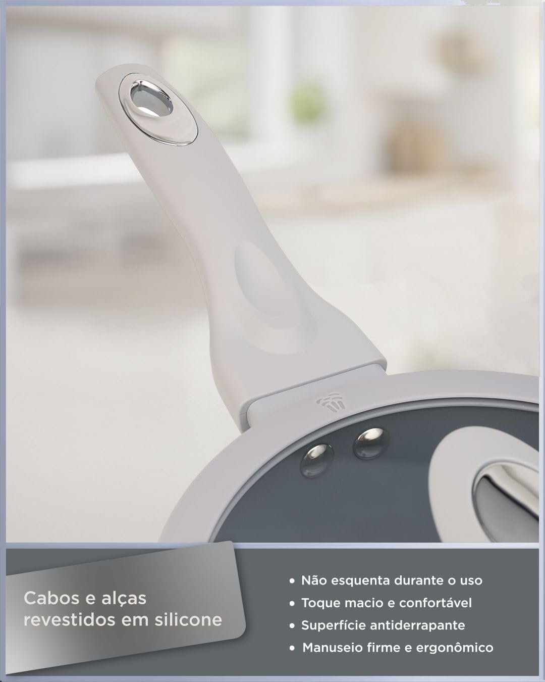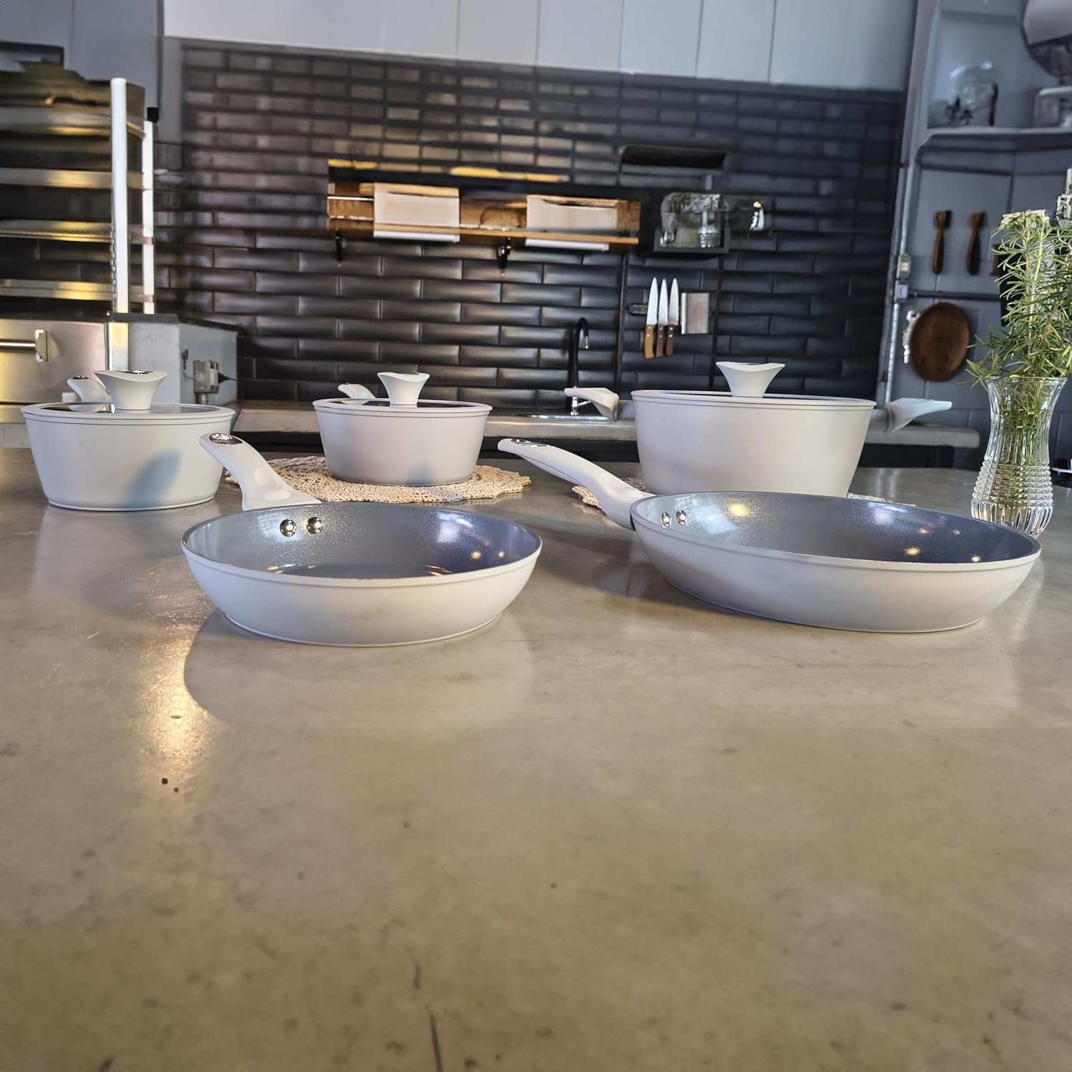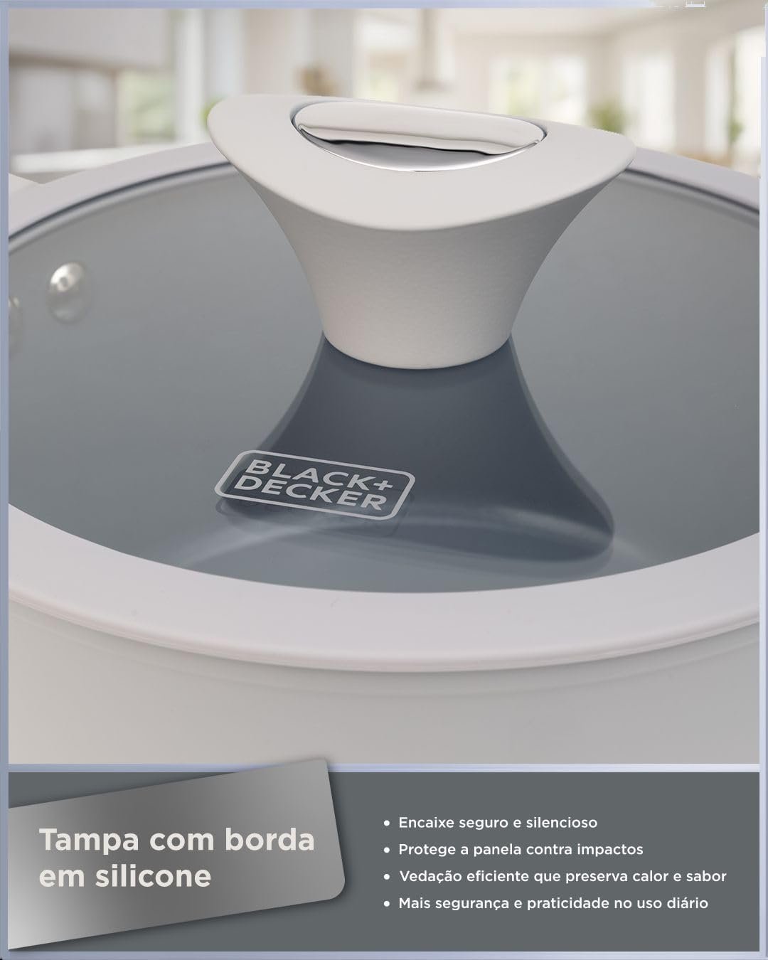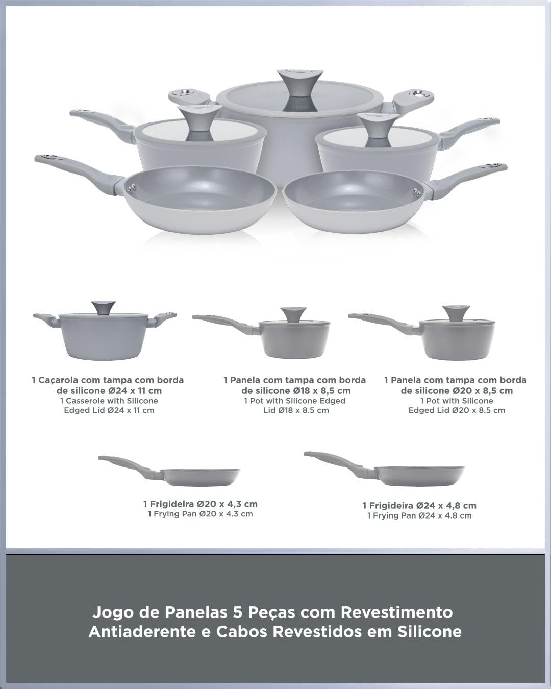 BLACK+DECKER Conjunto de Panelas 5 Peças Ceramic Pro Gourmand Gris – Revestimento Cerâmico Antiaderente, Base Compatível com Indução e Tampas de Vidro com Borda de Silicone – Mist Grey