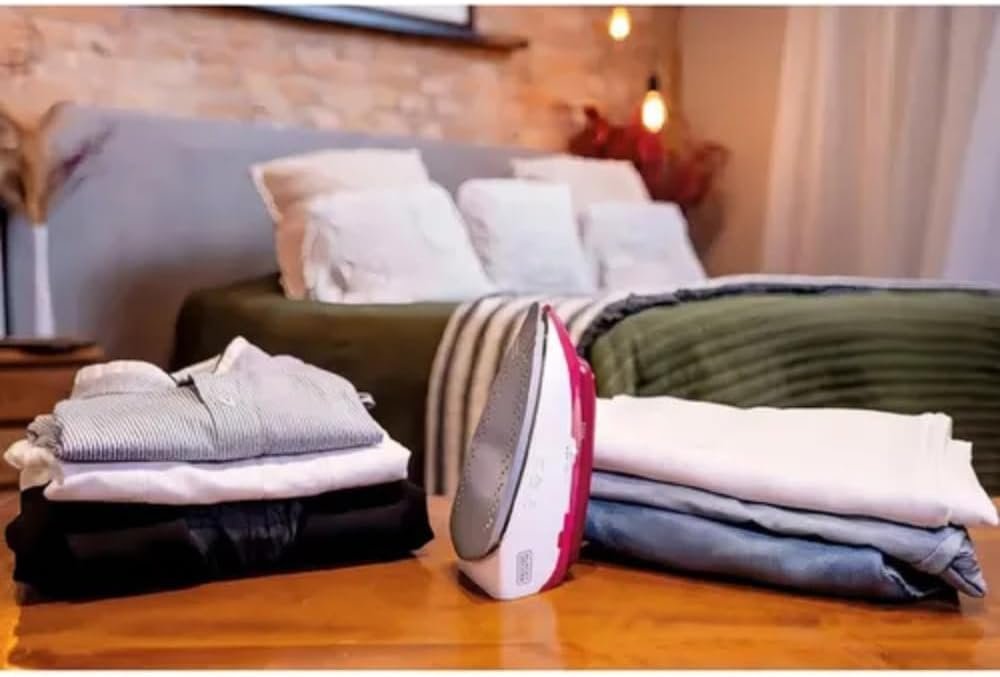 BLACK+DECKER Ferro de Passar Roupa à Vapor Portátil, Com Base Antiaderente, Alça Dobrável e Bolsa de Transporte, Modelo FXVG1, Bivolt