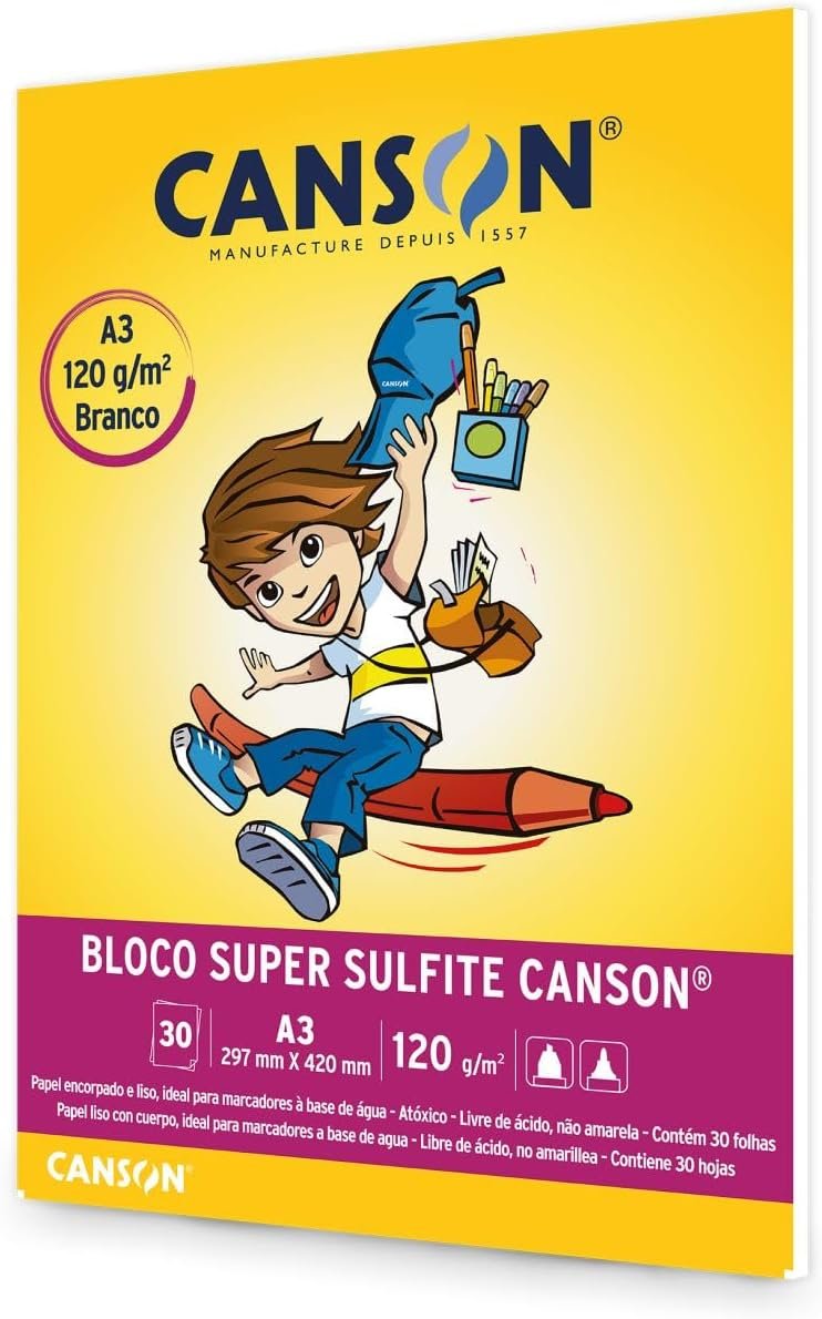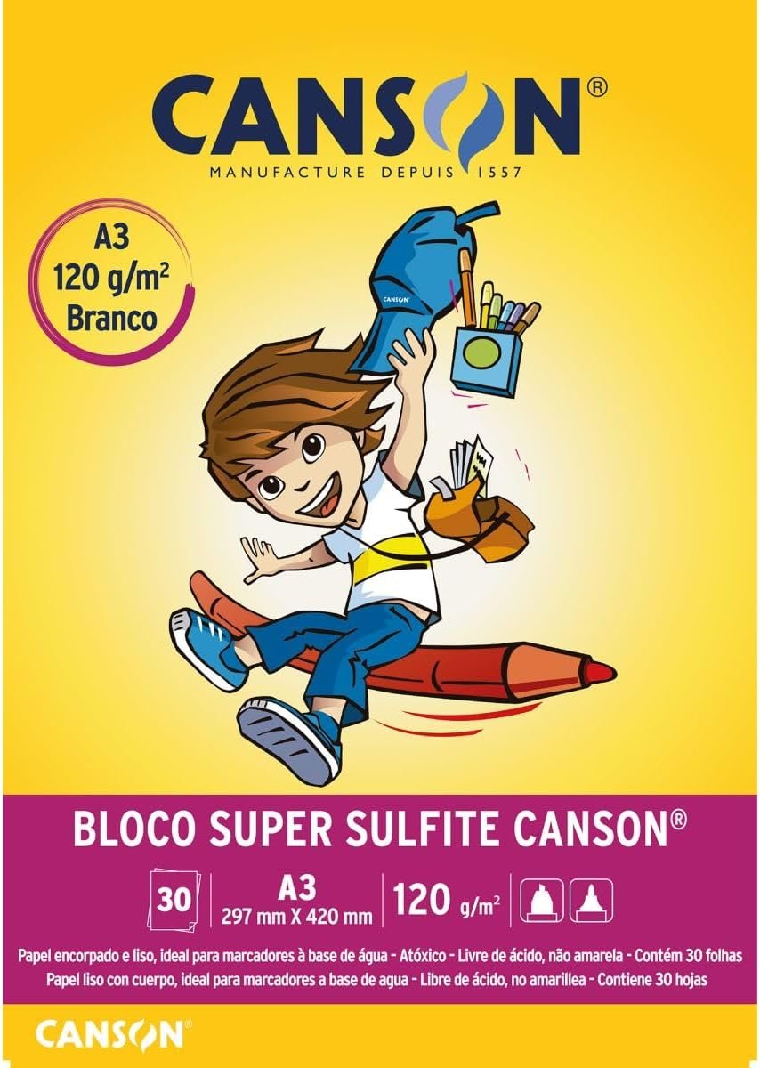 Bloco desenho liso branco A3 120g com 30 folhas CansonBloco desenho liso branco A3 120g com 30 folhas Canson