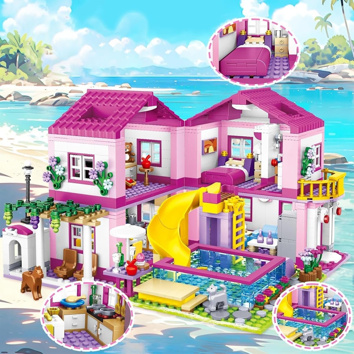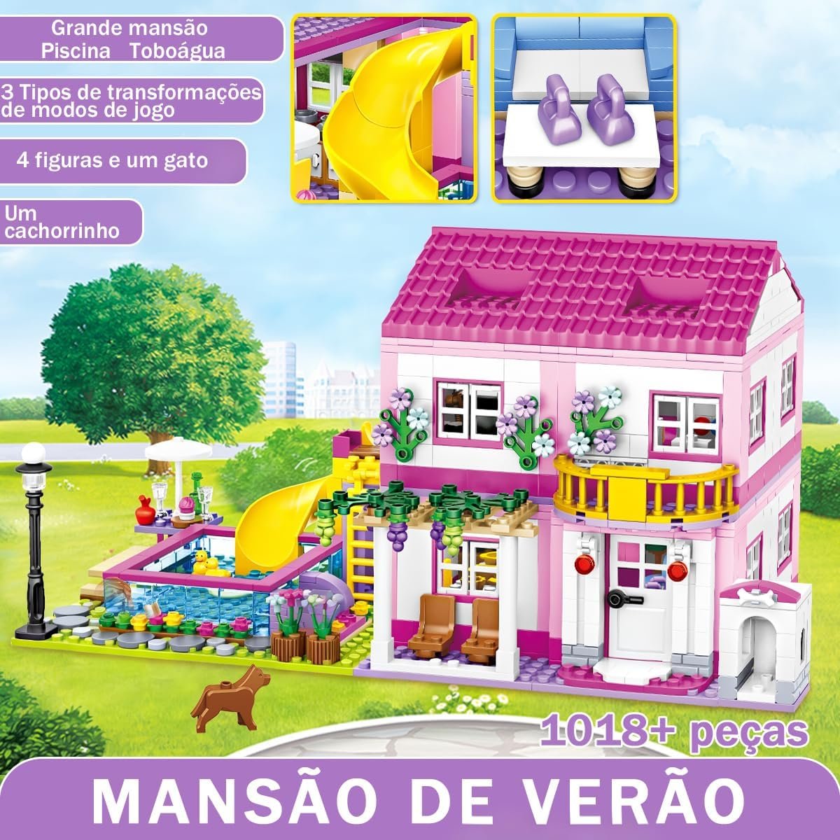 Blocos de Construção Conjunto Vila de Verão – 1018 Peças, Compatível com Blocos de Construção Padrão, Um Presente Adequado para Adultos e Crianças