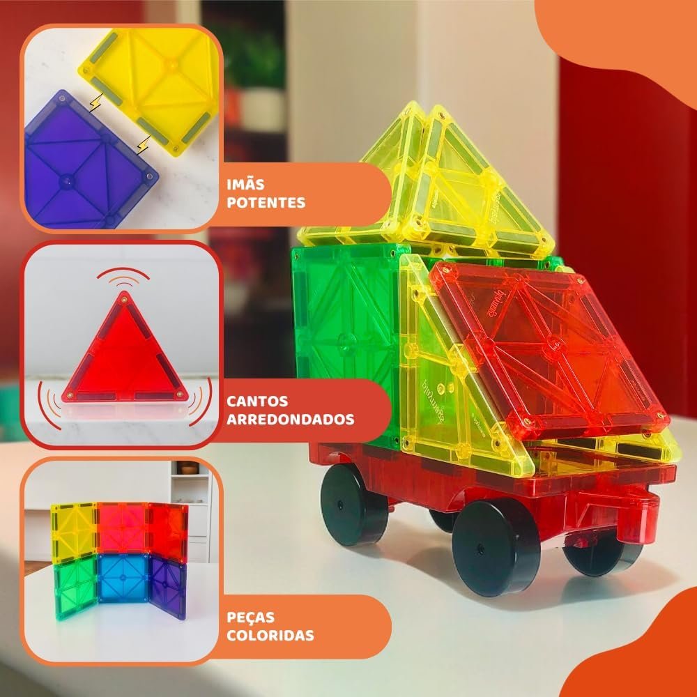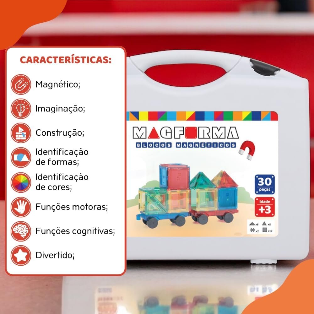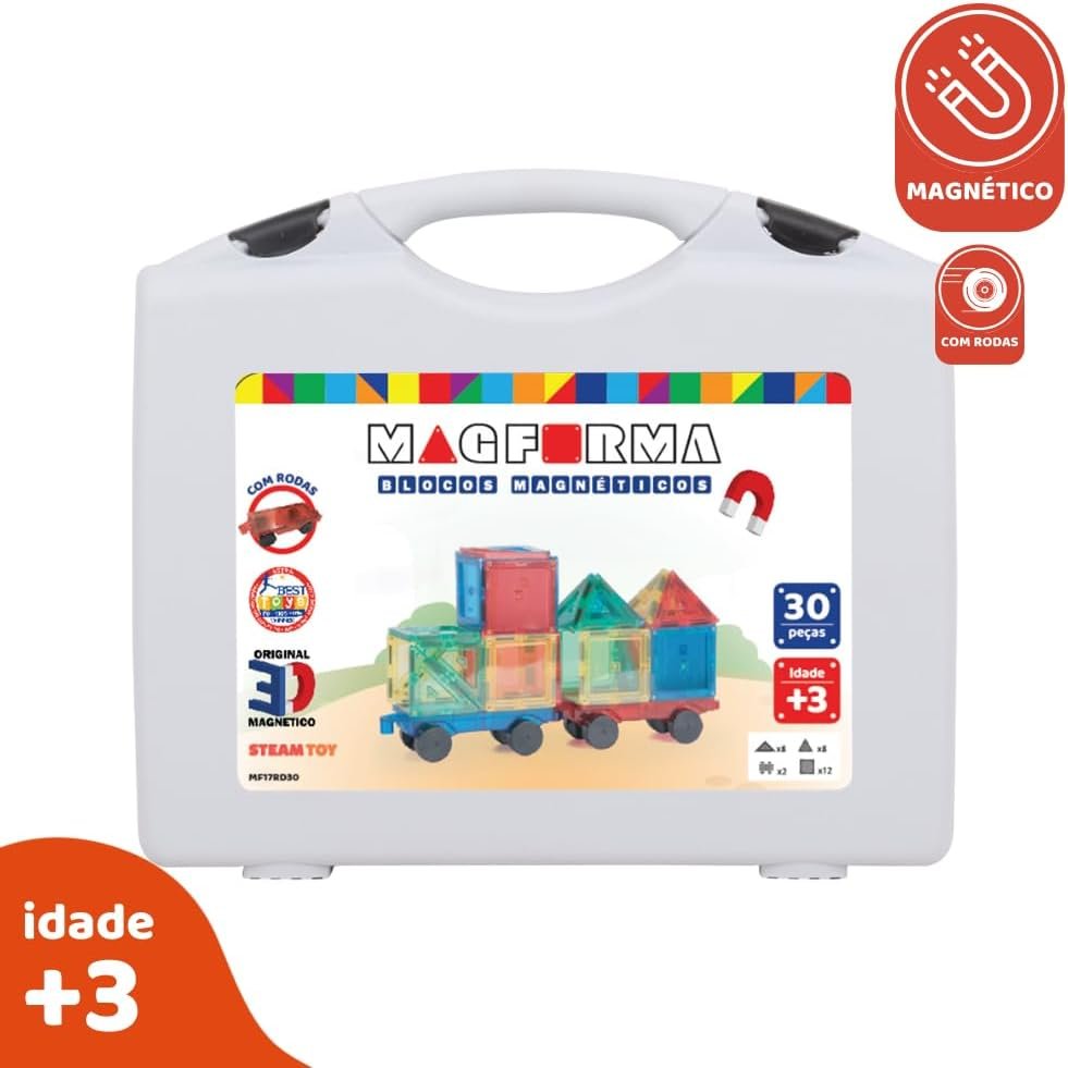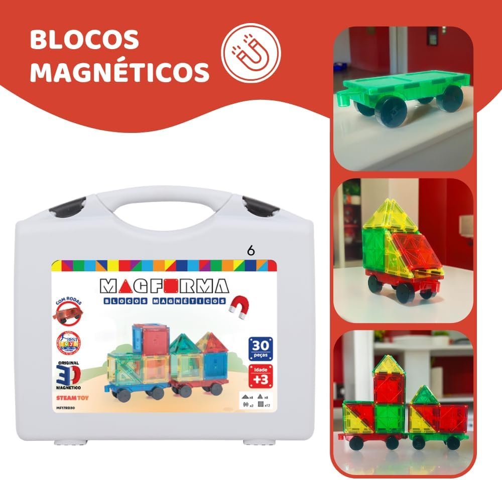 Blocos magnéticos Magforma 30 peças com rodas brinquedo magnético educativo