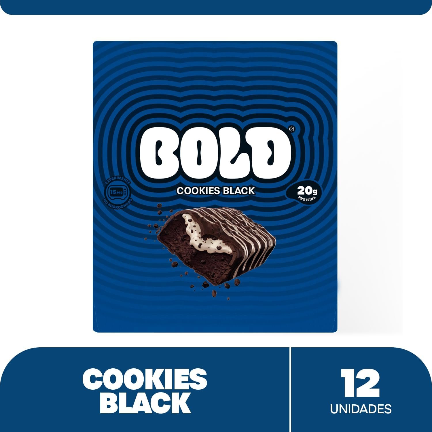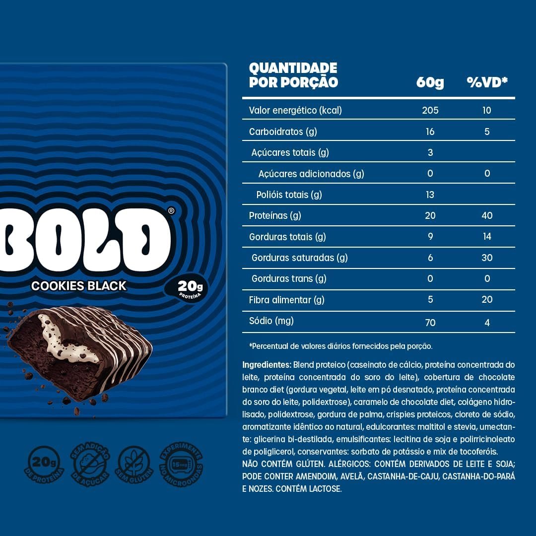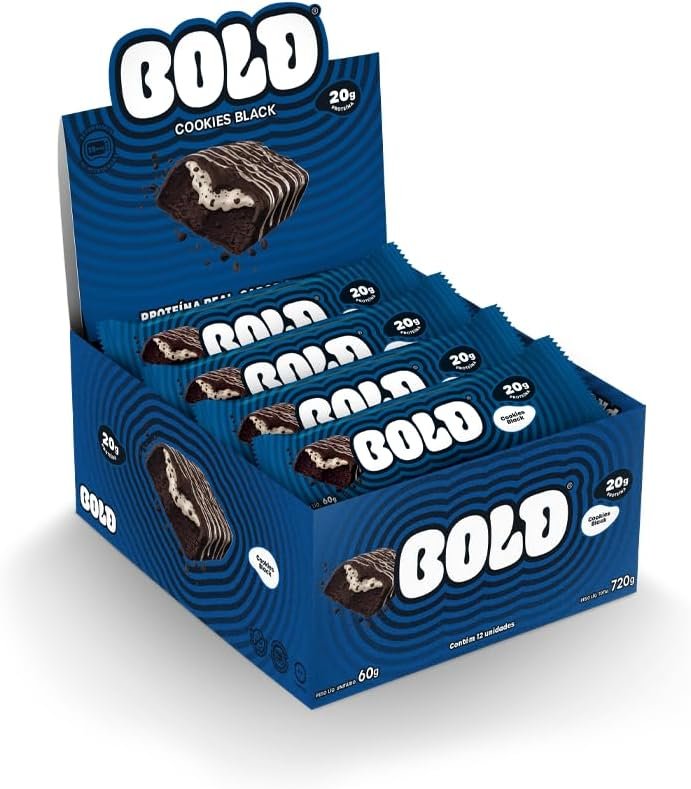 Bold Barra de Proteína Cookies Black | Caixa com 12 Unidades | 21g de Proteína | Zero Adição de AçúcarBold Barra de Proteína Cookies Black | Caixa com 12 Unidades | 21g de Proteína | Zero Adição de Açúcar