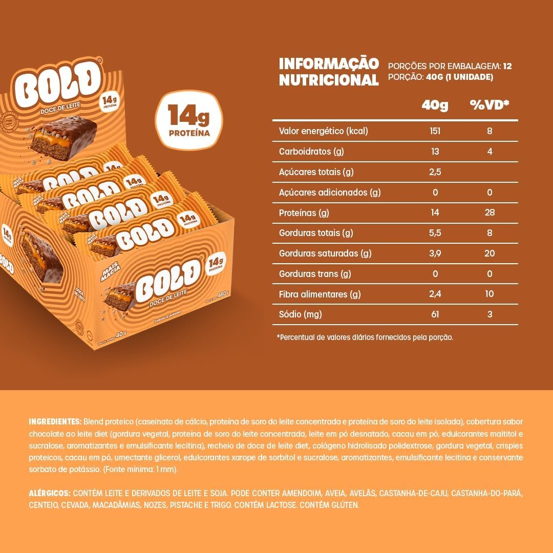 Bold Barra de Proteína Doce de Leite 40g (12 Unidades)