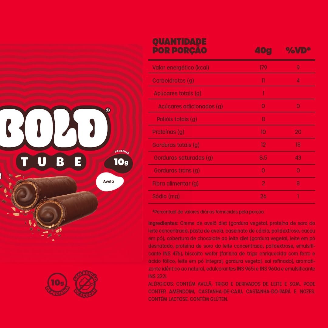 BOLD Tube Chocolate Proteico Avelã 10g de Proteína (12 Un.)