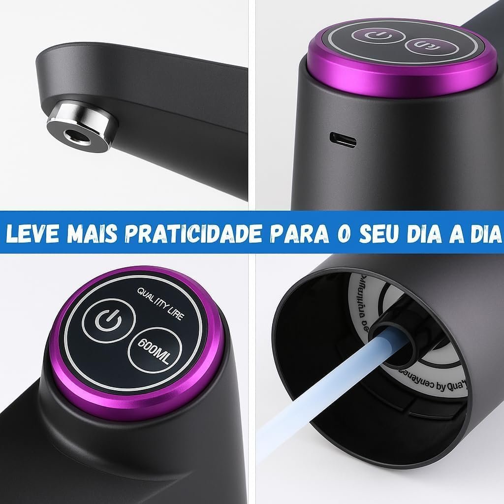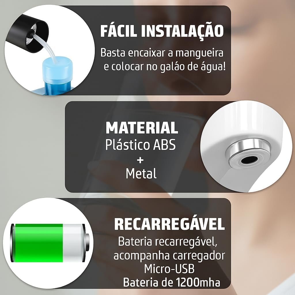 Bomba de Água Elétrica para Galão, Dispenser Automático, USB Recarregável, Compatível com Galões de 5-20L (Preto)