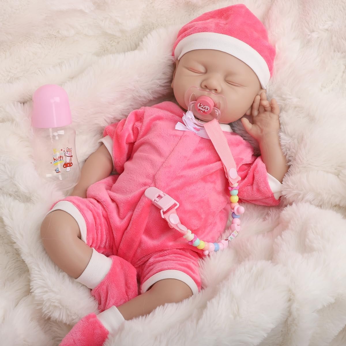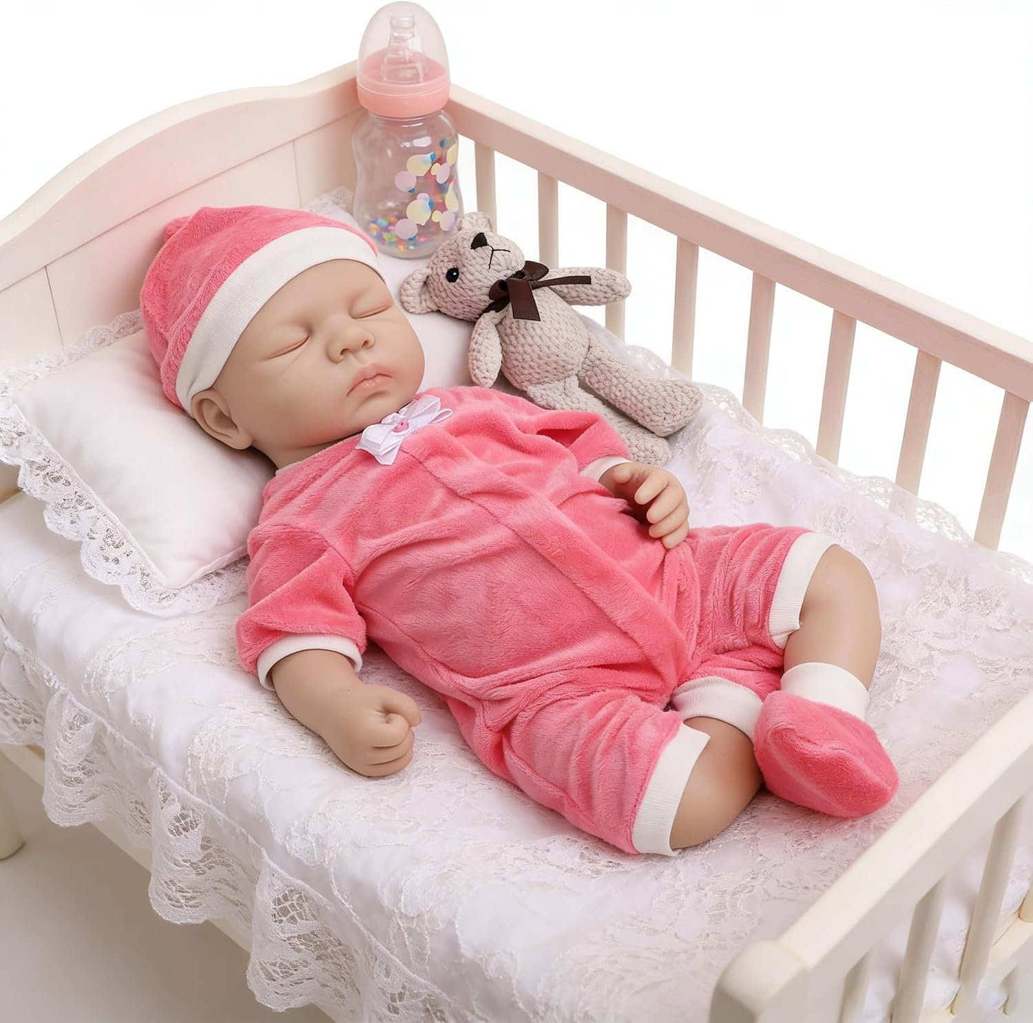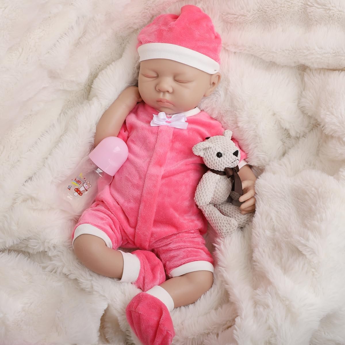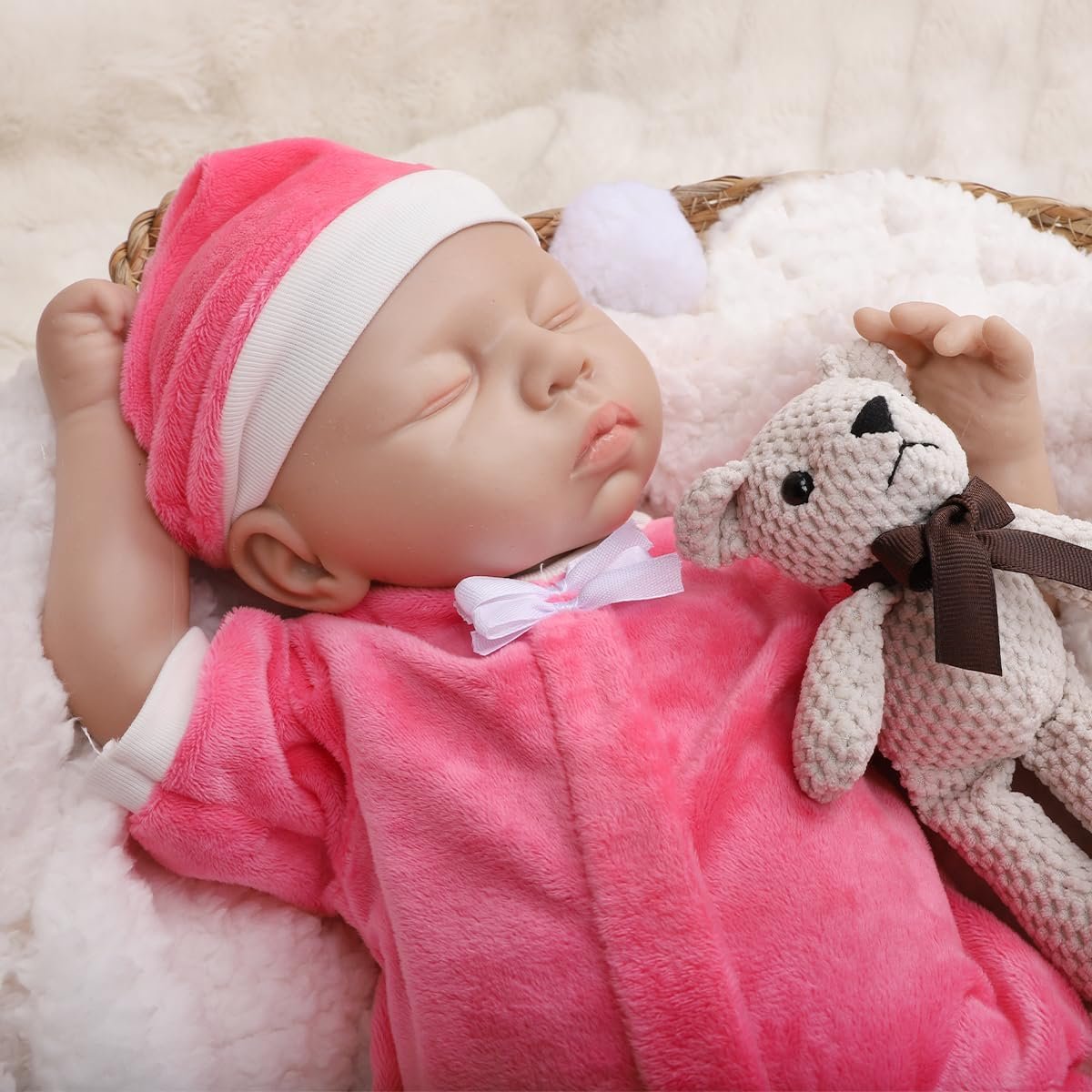 Boneca Bebê Reborn de Silicone Sólido Menina Macio com Roupas Acessórios (Menina Vermelha 48cm)