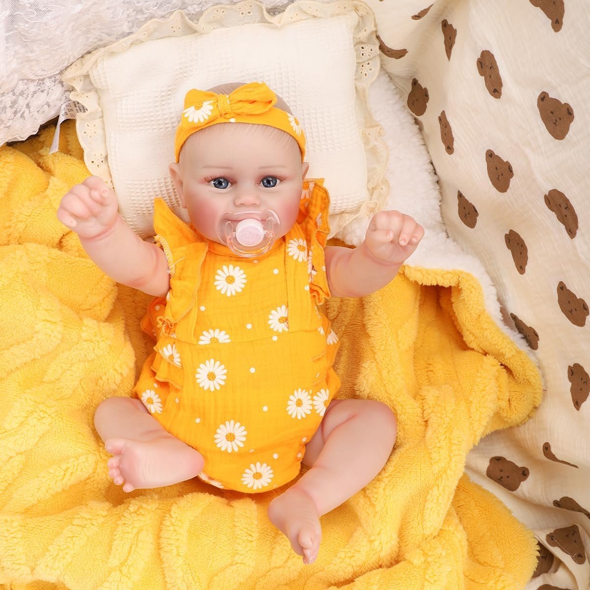 Boneca Bebe Reborn Menina de Silicone Realista Pintado Presente da Menina Pode dar Banho (Vestido Amarelo 48cm)Boneca Bebe Reborn Menina de Silicone Realista Pintado Presente da Menina Pode dar Banho (Vestido Amarelo 48cm)