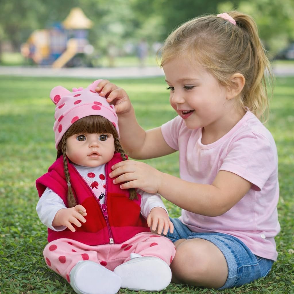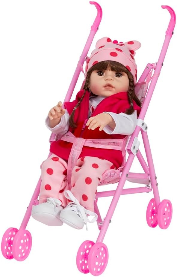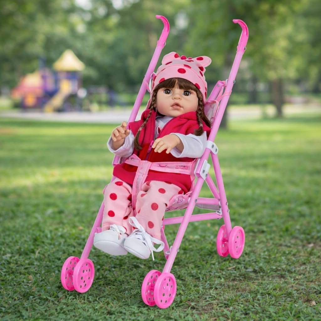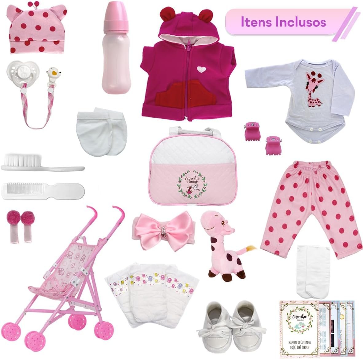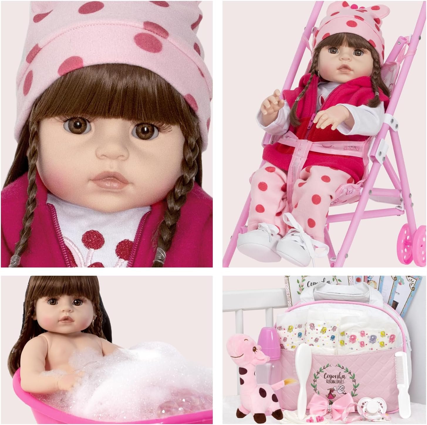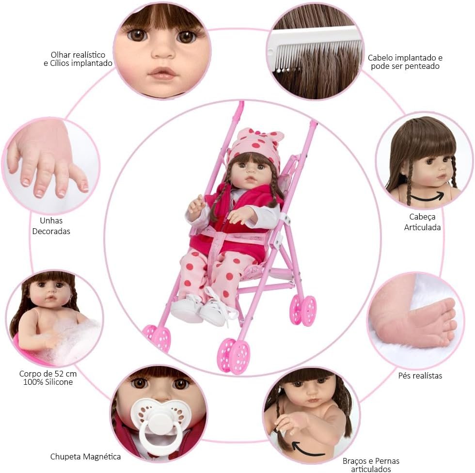 Boneca Reborn Girafinha Morena Com Bolsa Acessórios Carrinho