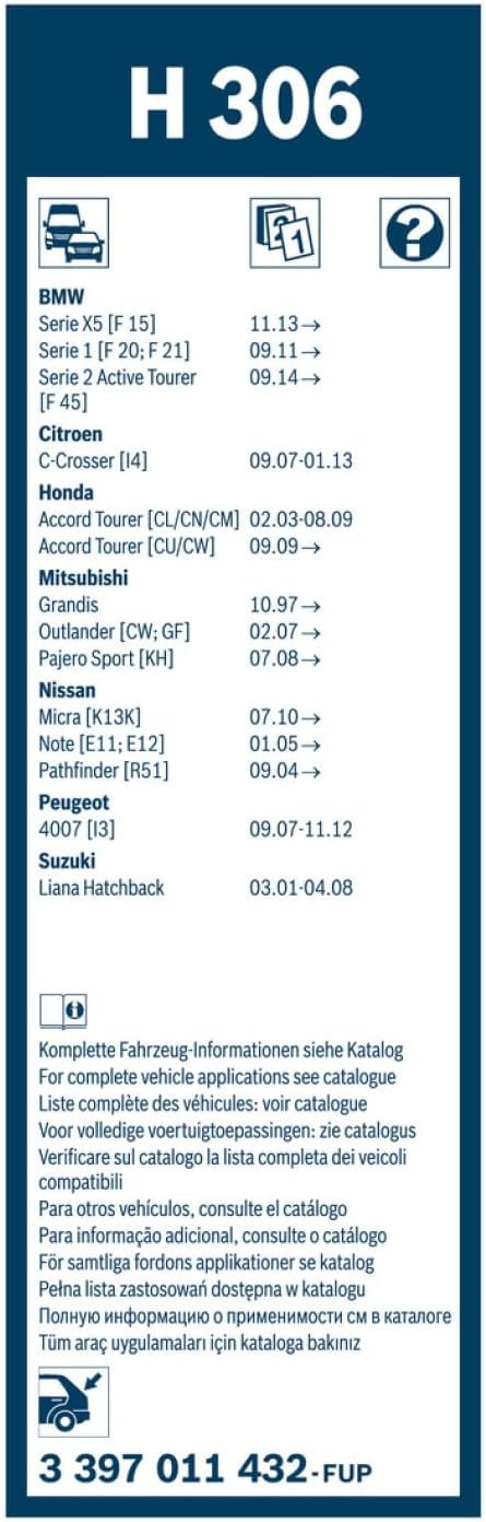 Bosch – Palheta Limpador Para-Brisa Traseira – Bosch Rear – H306 – Unitário