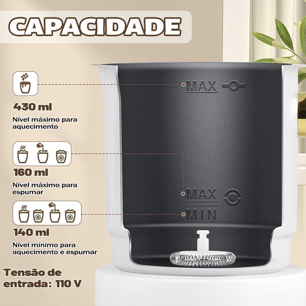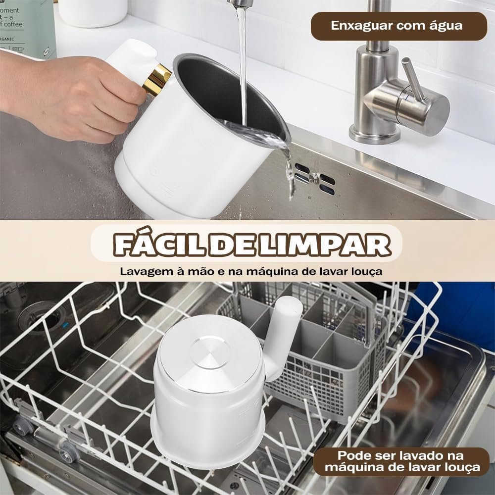 Branco Separado Espumador de Leite, 110V, 350ml, Espumador de Leite Elétrico 4 em 1, Desmontável, Fácil de Limpar, Aço Inoxidável, Adequado para Lattes, Cappuccinos, Macchiatos e Chocolate Quente