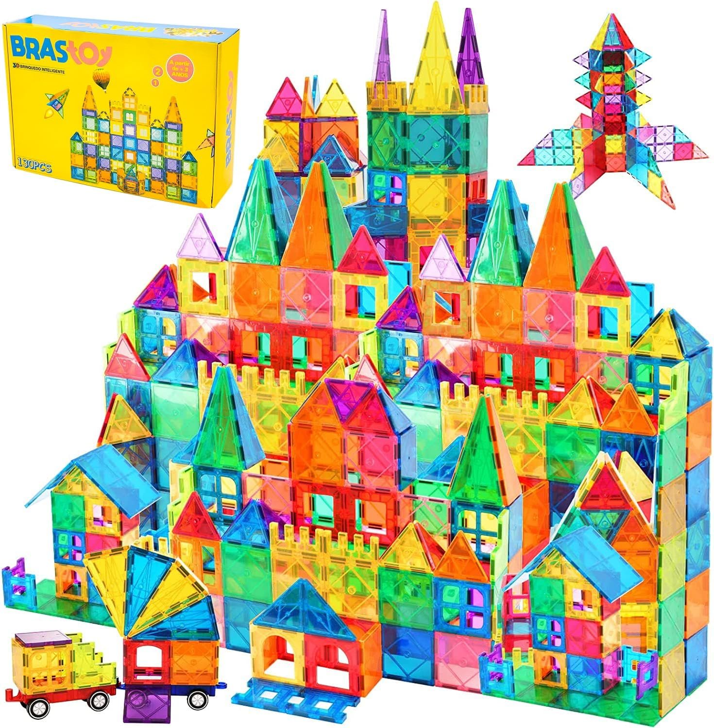 Brastoy Blocos de Montar Magnéticos Infantil Construção Brinquedo (130 Peças)