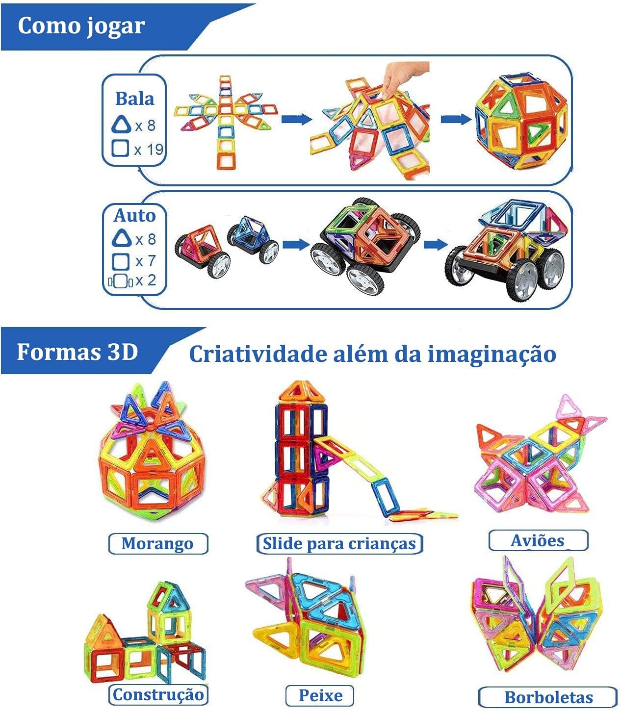 Brastoy Blocos Montar Magnéticos Brinquedo Educativo Infantil (120 Peças)