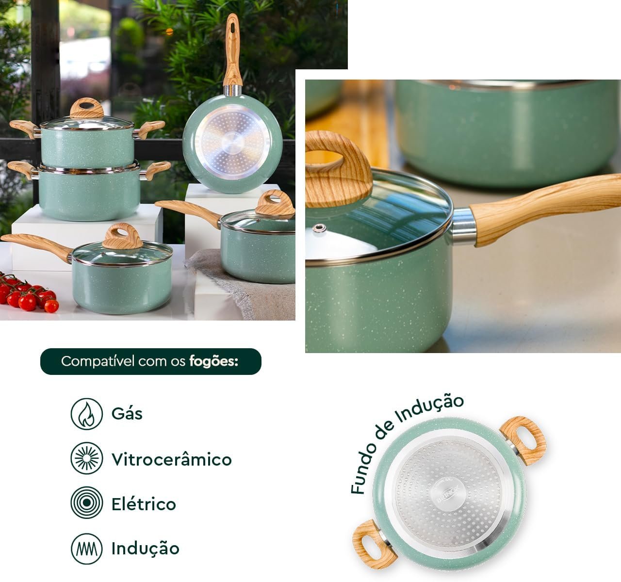 Brinox – Jogo de Panelas 5 Peças Ceramic Life Botanika com Fundo de Indução – Verde