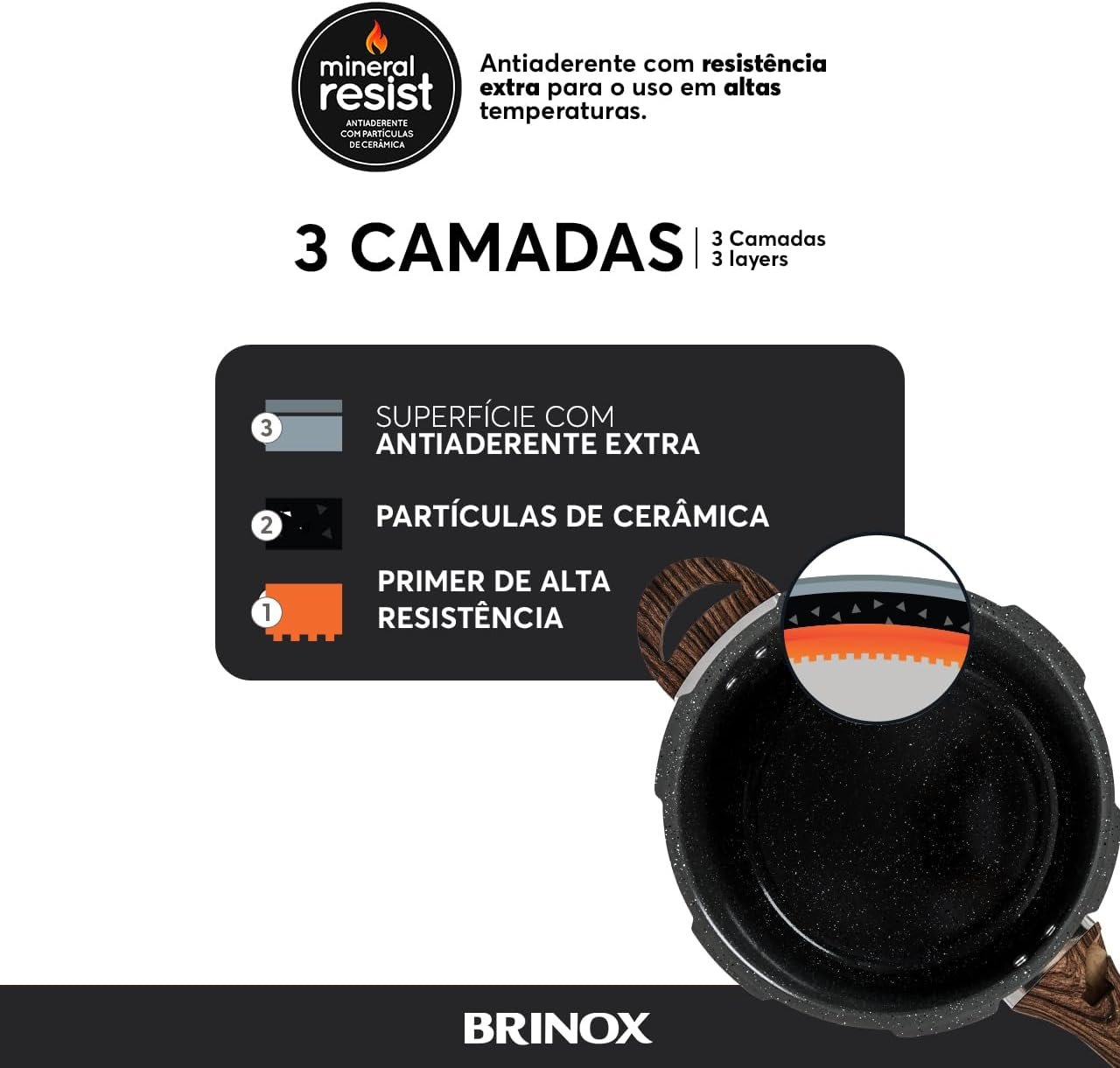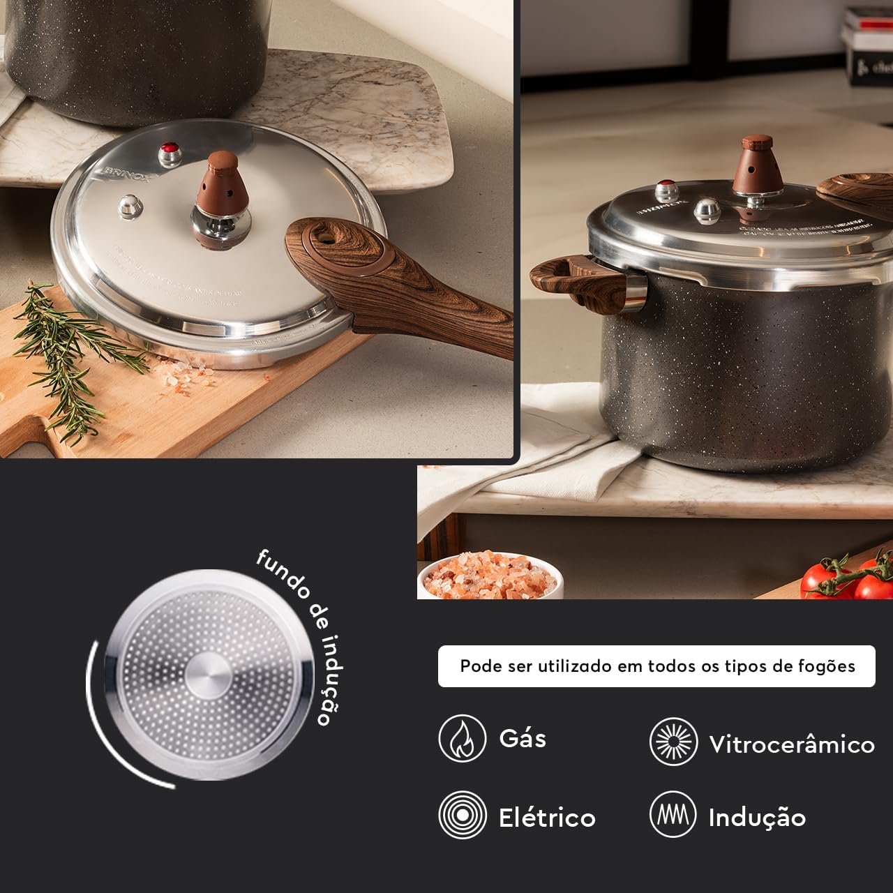 Brinox – Panela de Pressão Ceramic Life com Fundo de Indução 4,2L – Granito