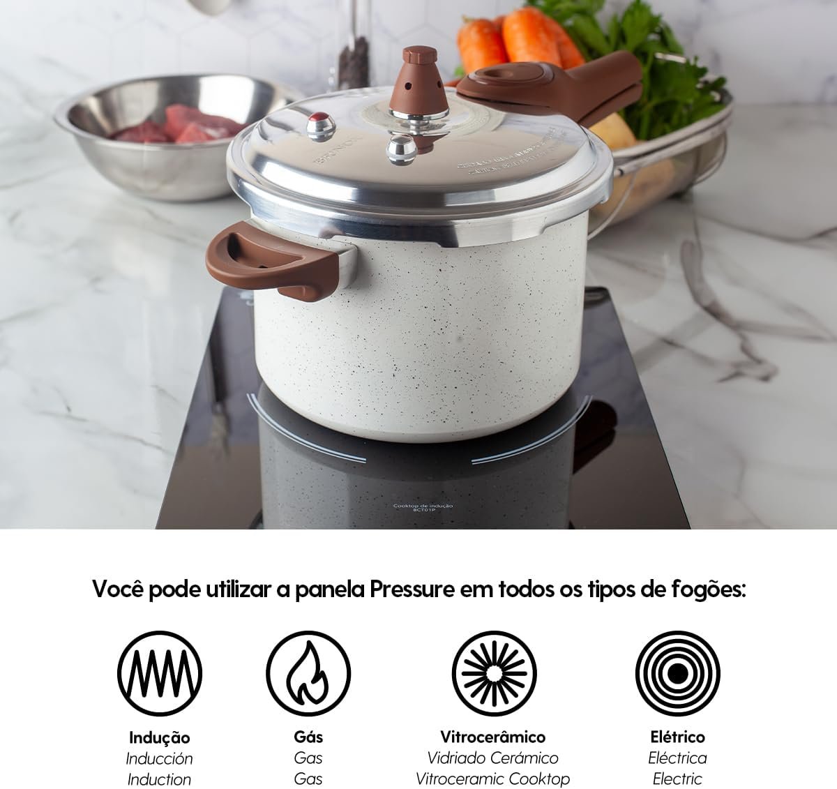 Brinox – Panela de Pressão Ceramic Life Pressure Indução 4,2L + Concha – Vanilla