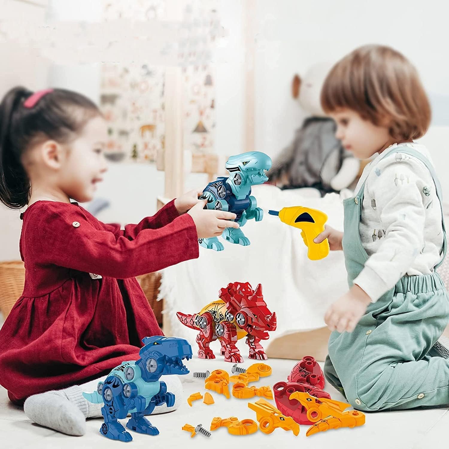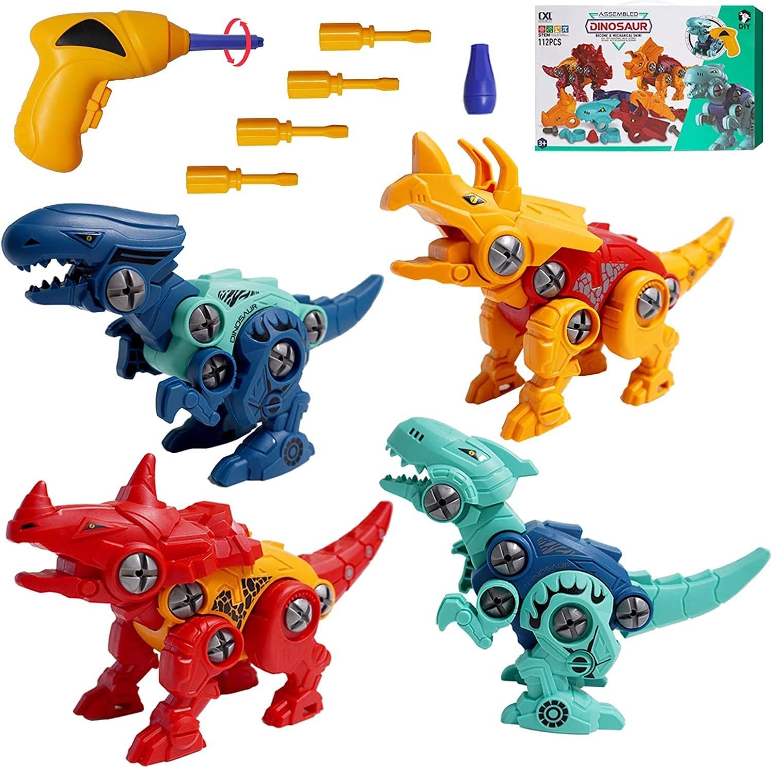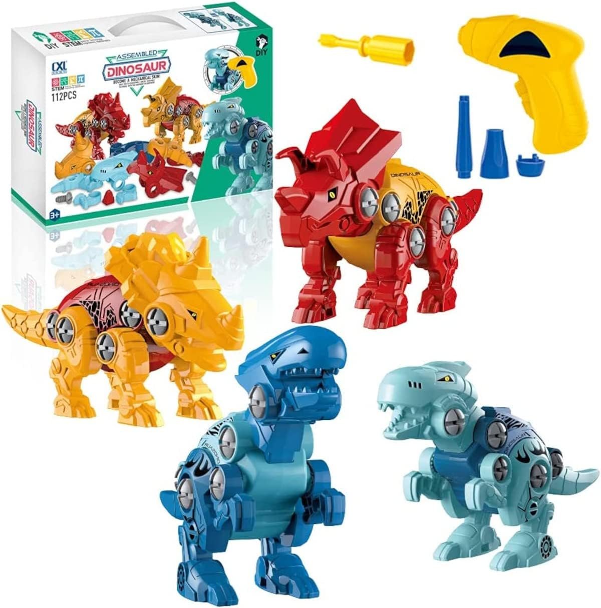 BRINQUEDO BLOCOS DE MONTAR INFANTIL KIT 4 DINOSSAUROS 112 PC