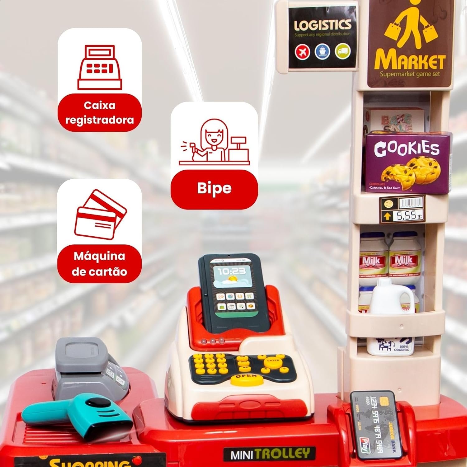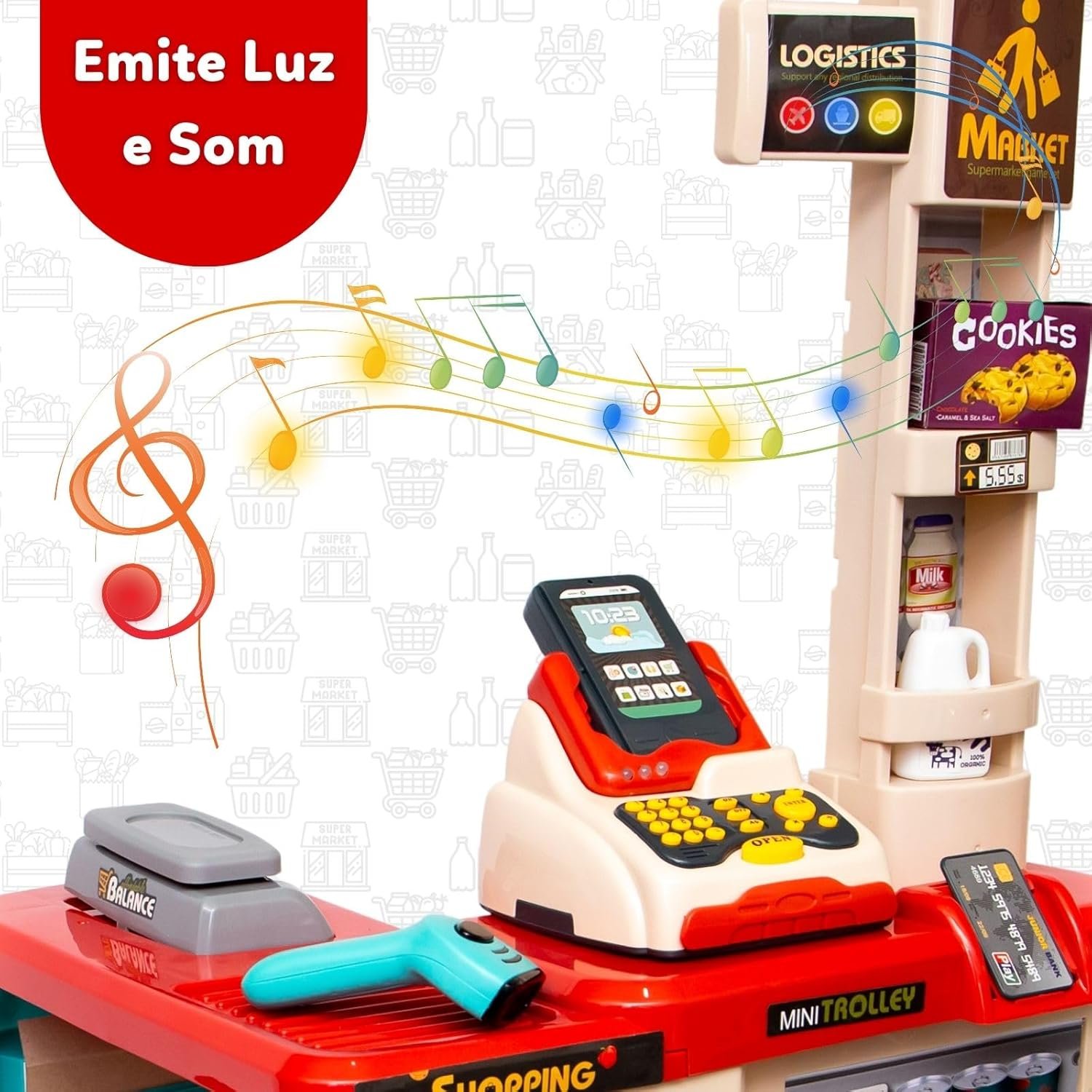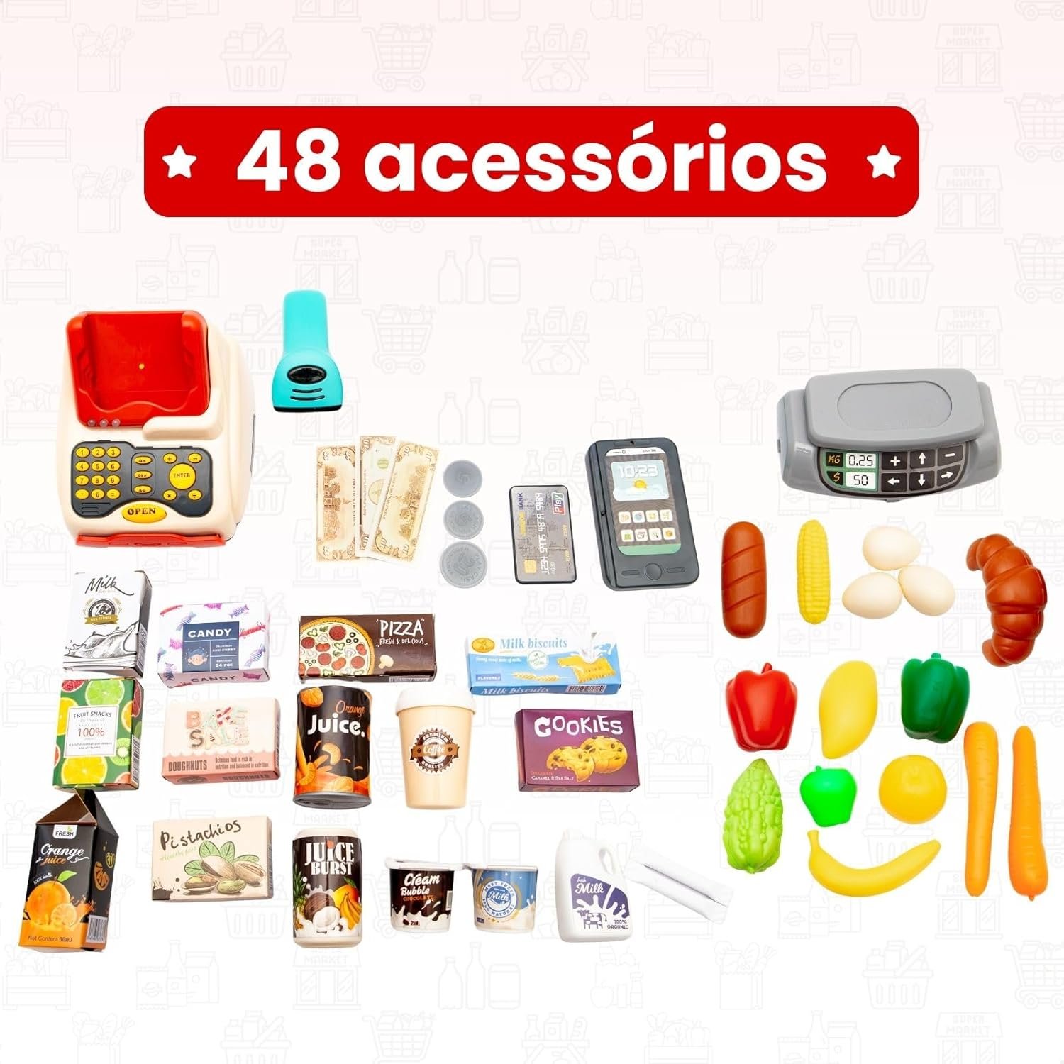 Brinquedo Mercadinho Infantil Supermercado Com Caixa Registradora e Carrinho Luz E Som 48 peçasBrinquedo Mercadinho Infantil Supermercado Com Caixa Registradora e Carrinho Luz E Som 48 peças