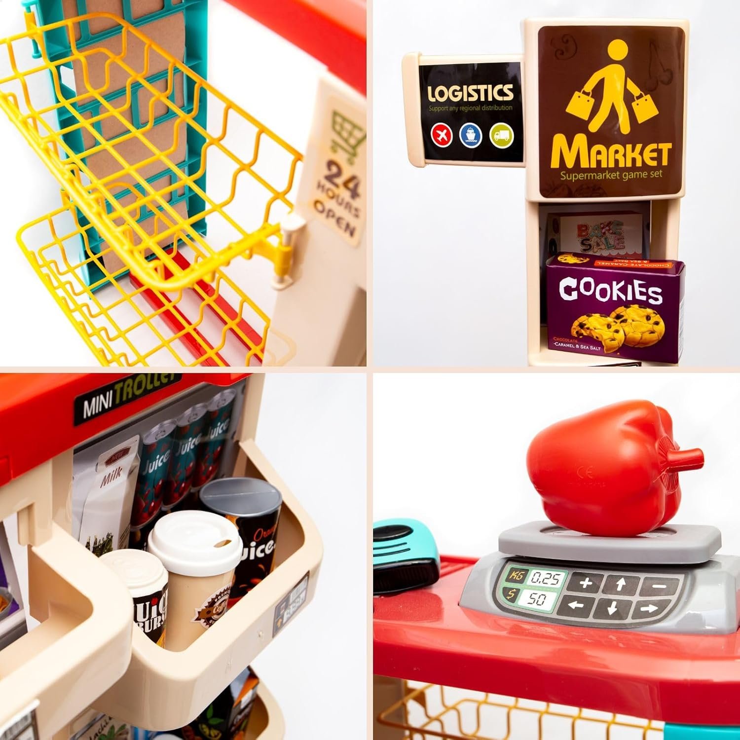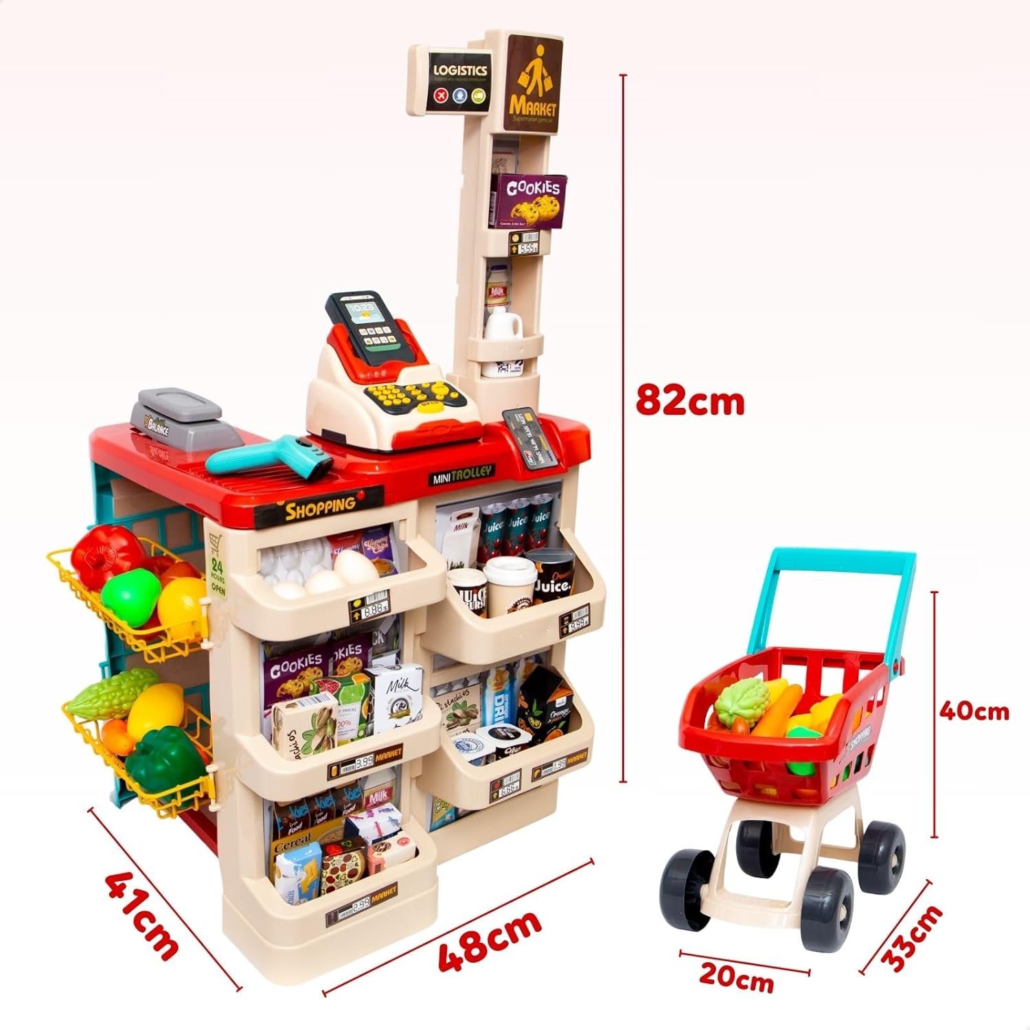 Brinquedo Mercadinho Infantil Supermercado Com Caixa Registradora e Carrinho Luz E Som 48 peças