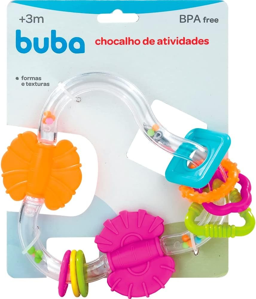 Descrição Curta: Descubra o chocalho de atividades BUBA, perfeito para entreter e estimular o desenvolvimento do seu bebê. Com um design colorido e um mordedor integrado, este chocalho é ideal para momentos de diversão e aprendizado. Garanta já o seu!