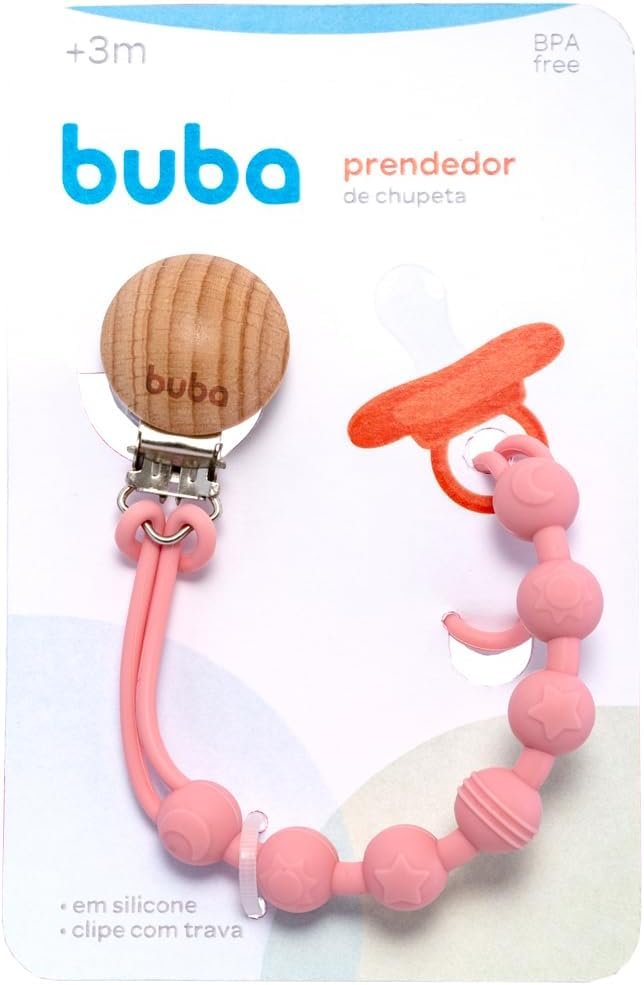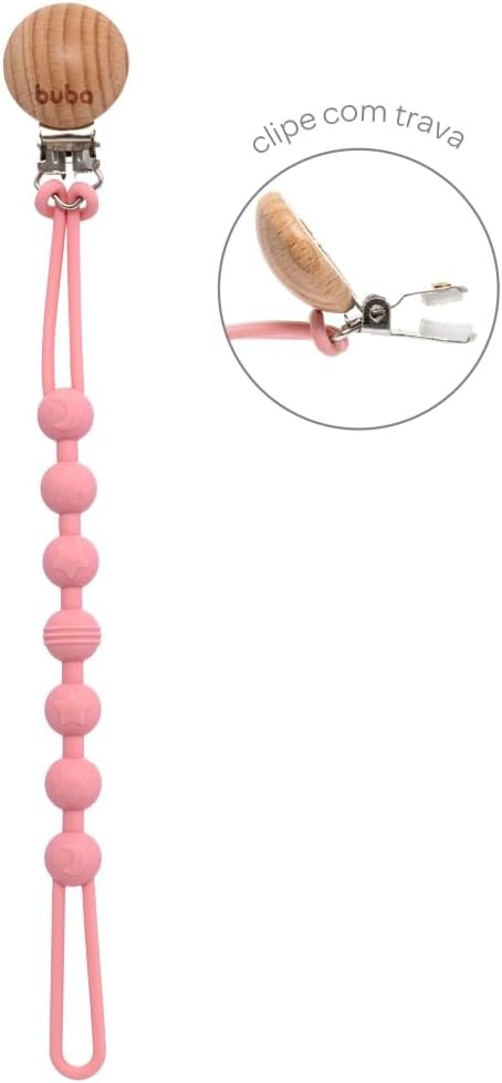 Buba, Prendedor De Chupeta Em Silicone Rosa