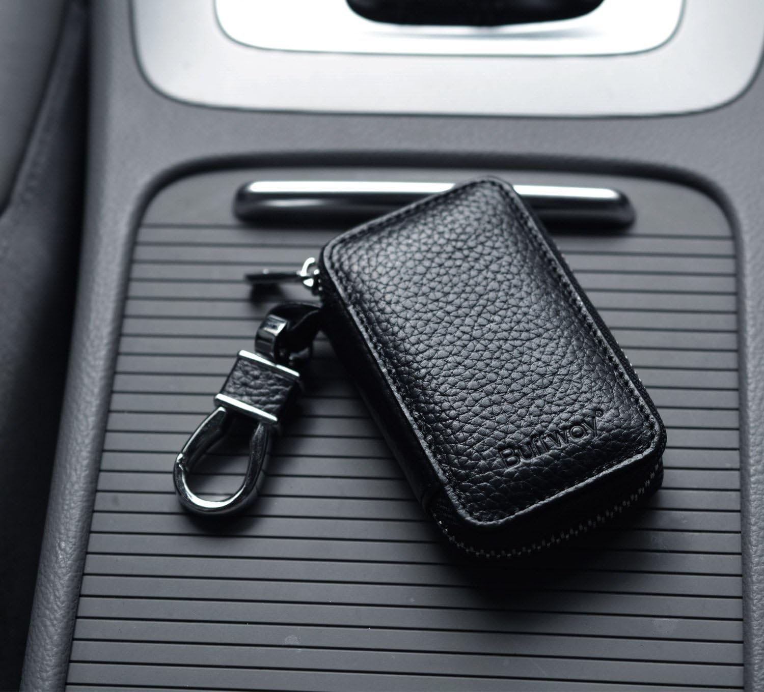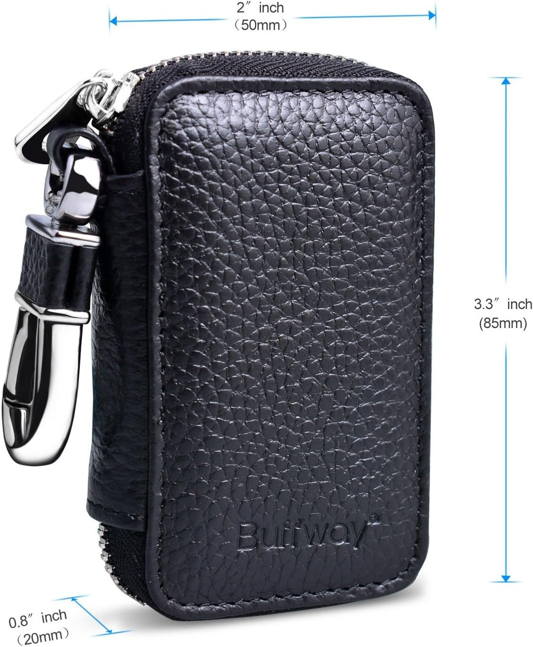 Buffway Chaveiro de carro, chaveiro de couro legítimo, porta-moedas, gancho de metal e porta-chaves carteira com zíper para entrada sem chave de veículo