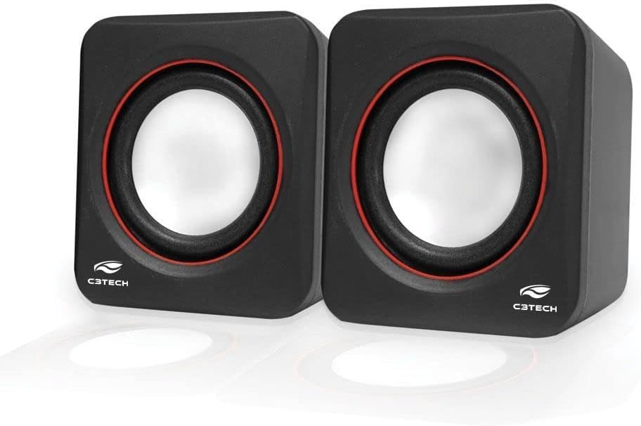 C3Tech Caixa de som SP-301BK Preto – Sistema de audio 2.0 P2 Com Blindagem Eletromagnética alimentacao via porta USB