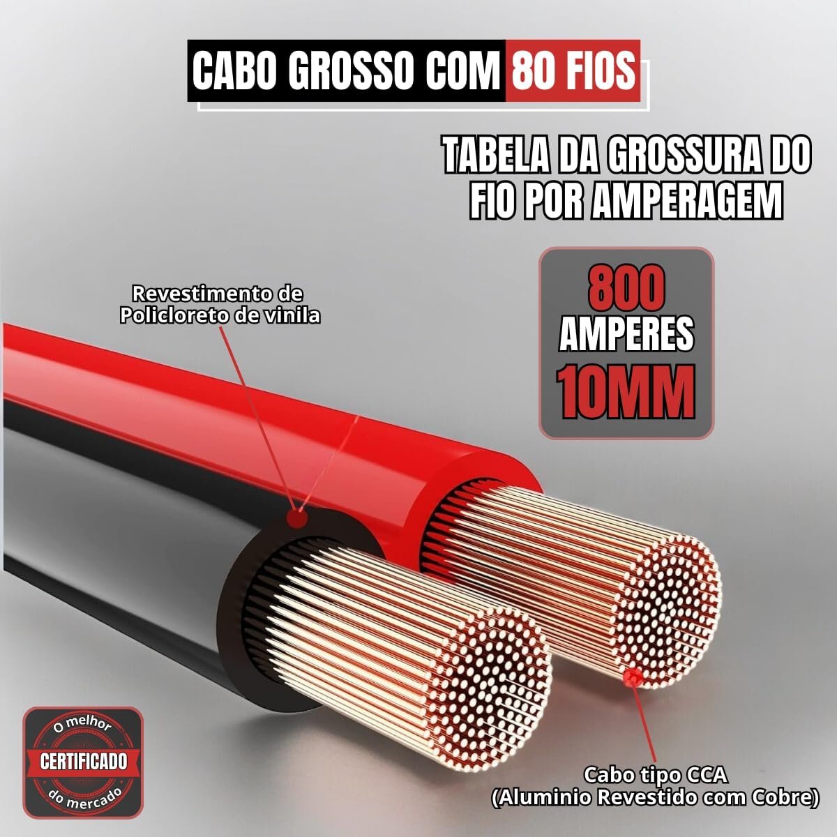 Cabo Bateria Chupeta Automotivo 800amp Carro Moto Caminhão